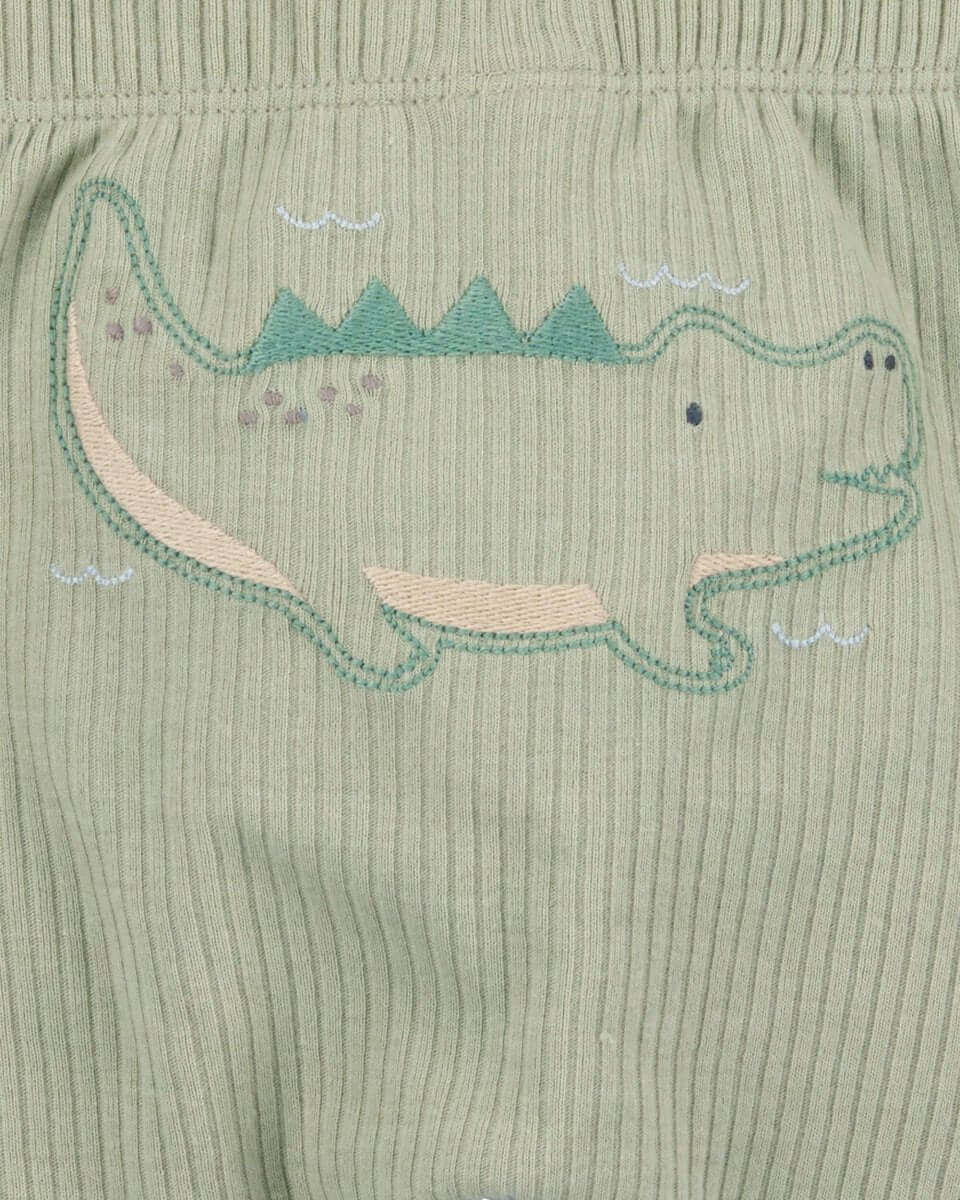 Conjunto tres piezas de algodón pantalón y dos bodies diseño caimán