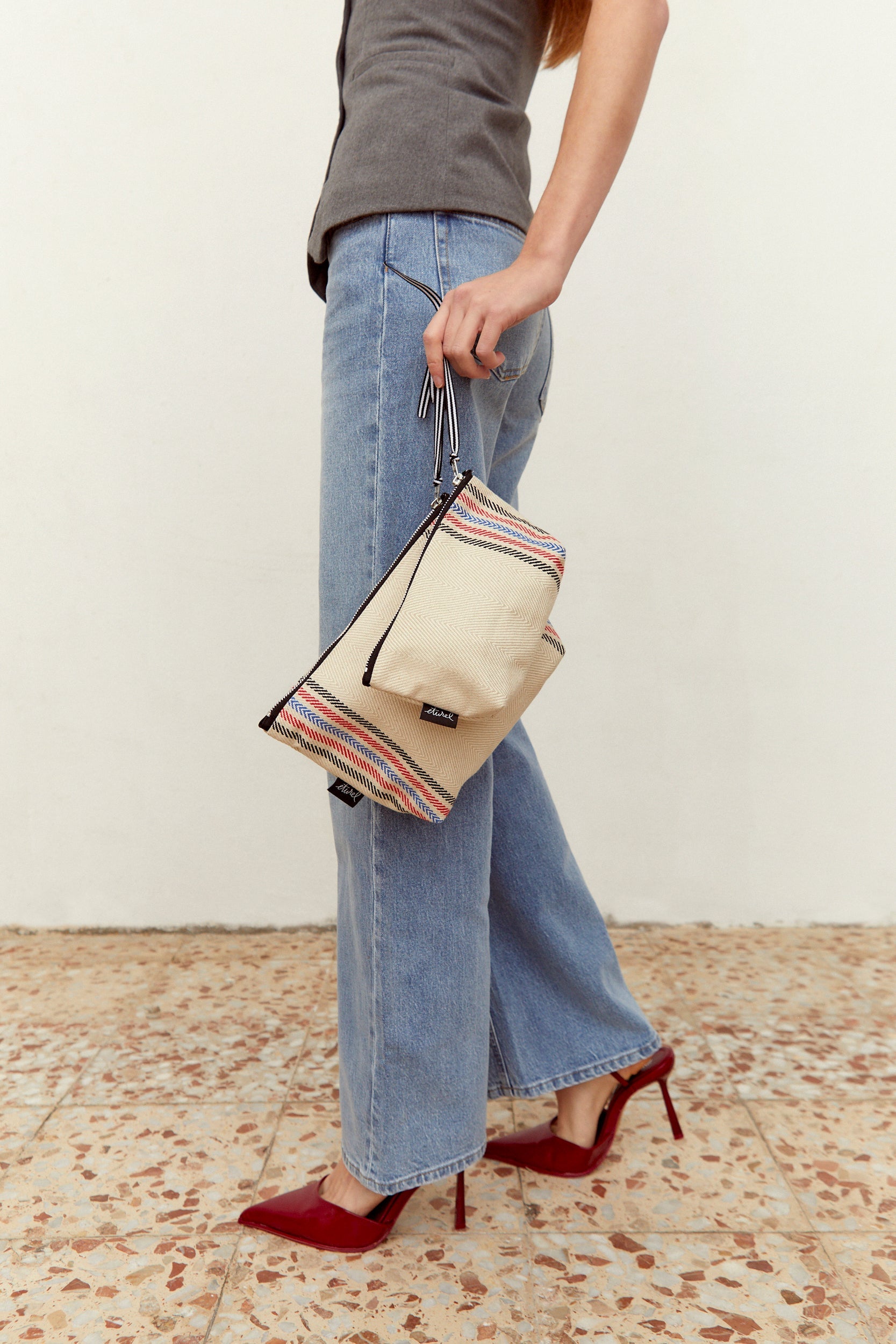 ¡Agrega un toque de glamour a cualquier destino que vayas! La pareja de neceser y estuche sarga de burgos es la tradición y la modernidad producto hecho a mano. Su icónico estampado retrotrae los sacos de trabajo que acompañaban a los burros en las labores. Un producto 100x100 en español y de fabricación artesanal. ¡Yo no me lo pierdo!