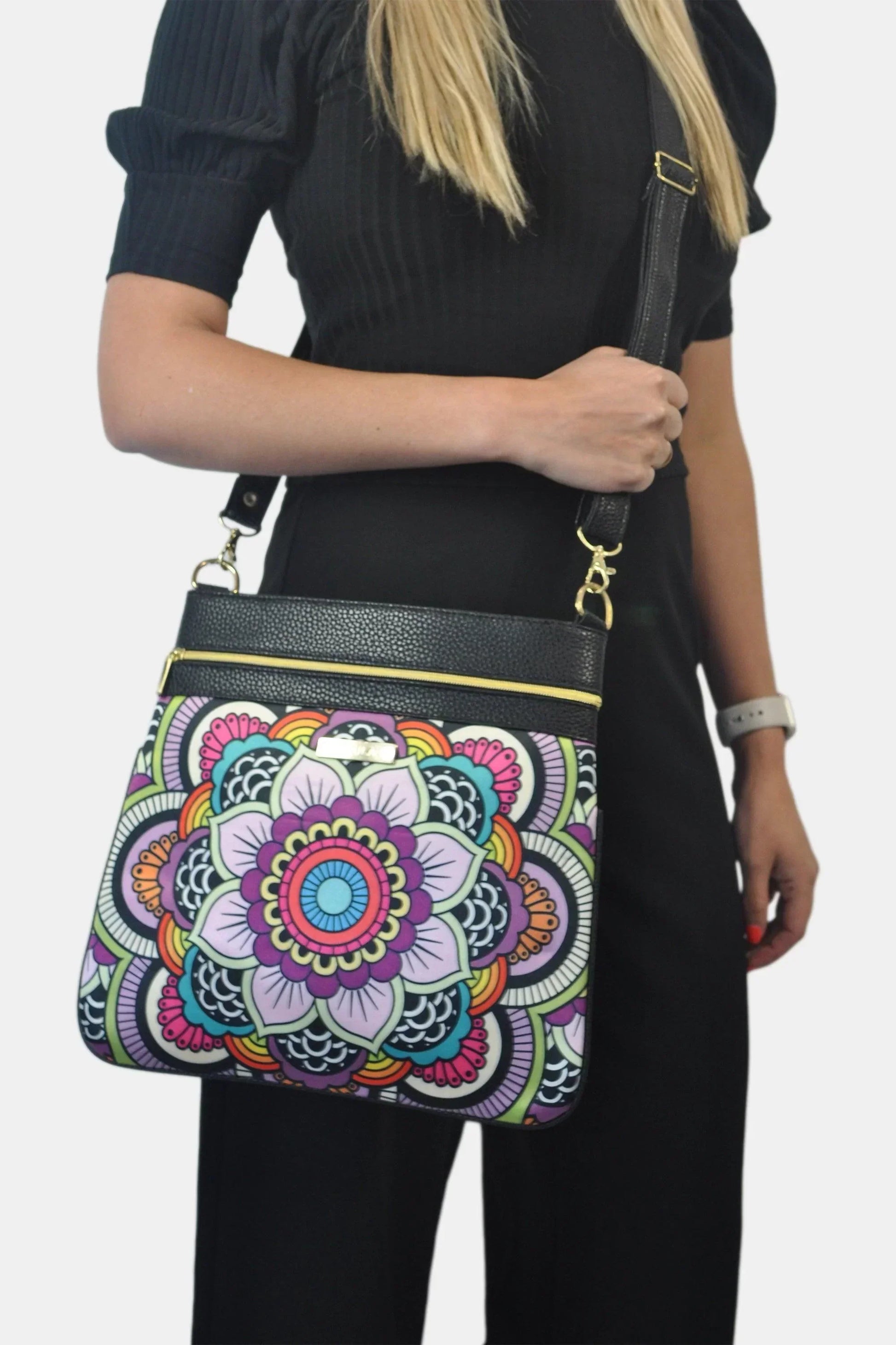 Bolso mediano bandolera de mujer con estampado mandalas
