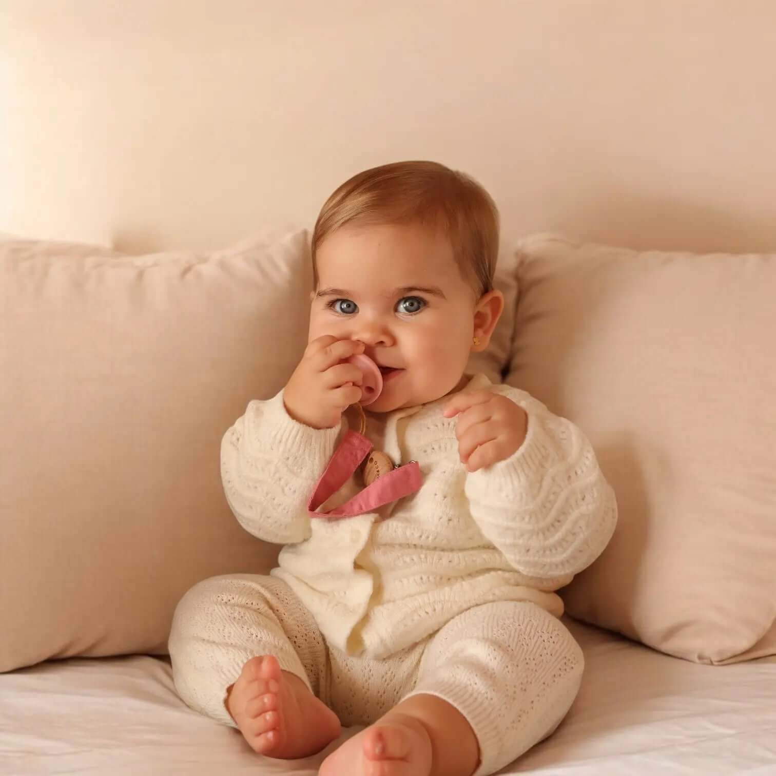 2 Chupeteros de algodón orgánico con pinza de bamboo ecológico , Libre de BPA y Ftalatos. + 2 Chupetes DIAMOND con tetina fisiológica apto desde el momento 0 sin limite de edad + 1 Guardachupete DIAMOND ideal para que tanto los chupete como los chupeteros tengan su lugar especifico.