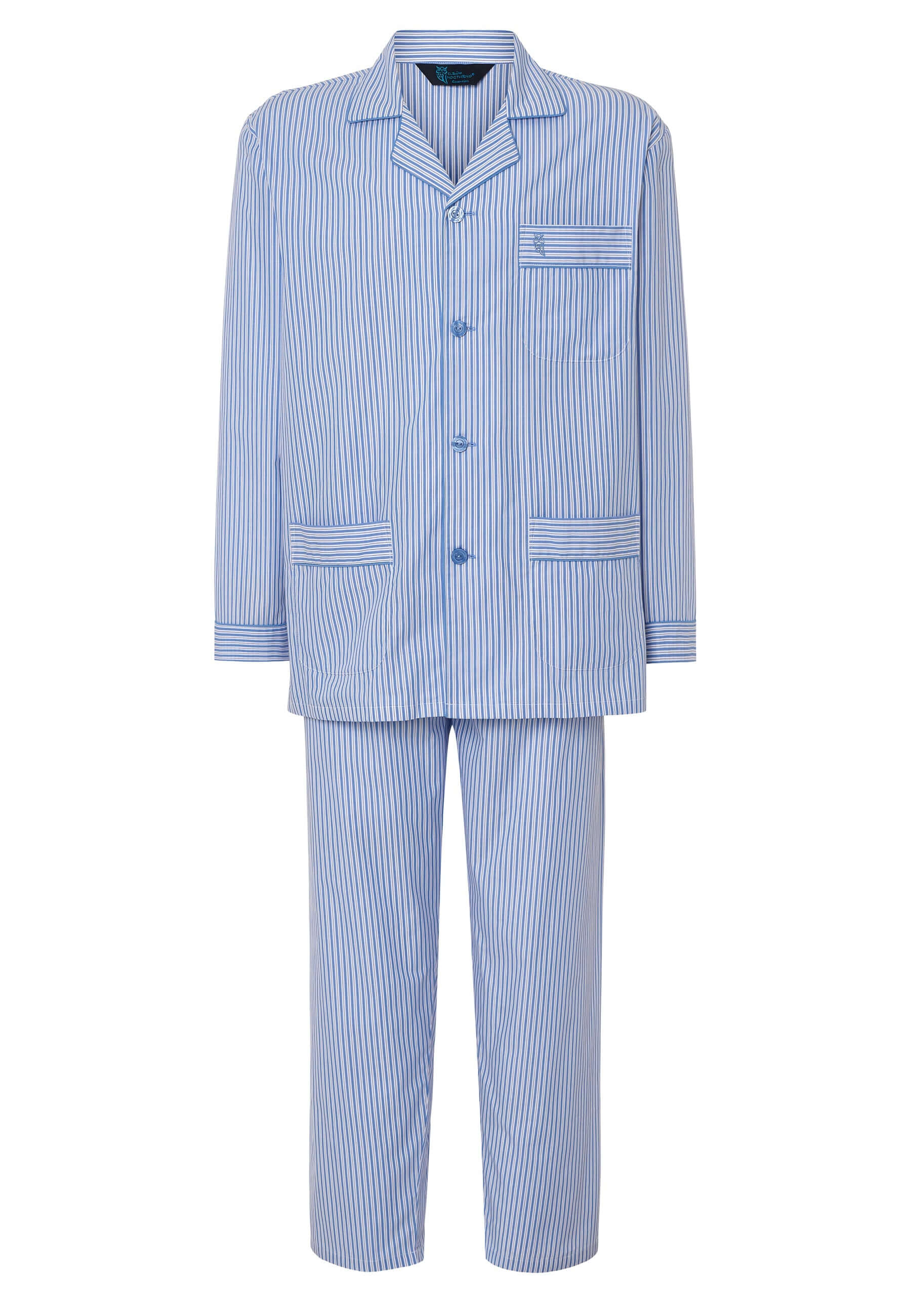 Pijama Hombre Largo Solapa Algodón Popelín Rayas - Azul 2993_36