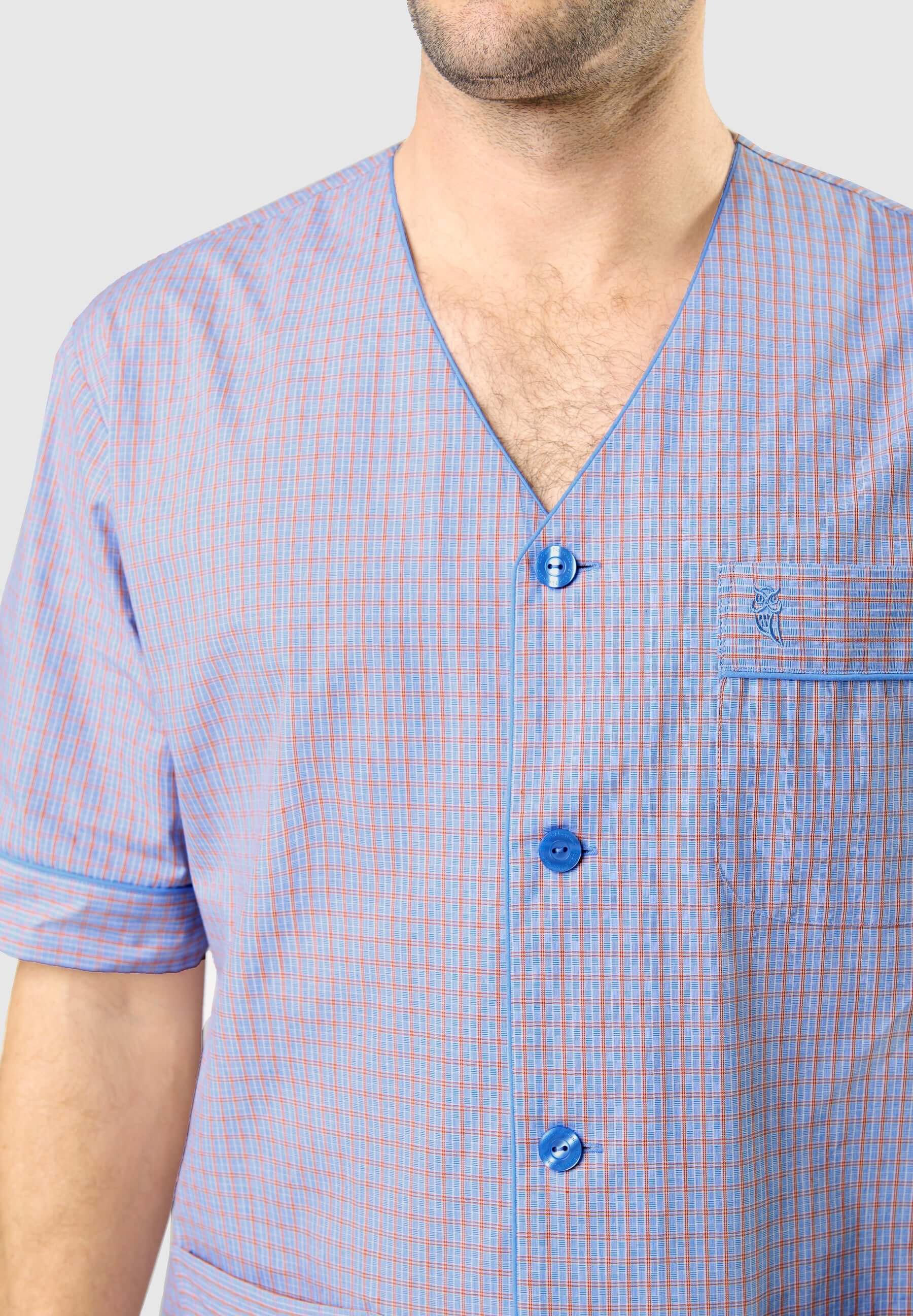 Pijama Hombre Verano Corto Judo Algodón Popelín Cuadros - Azul 4538_30