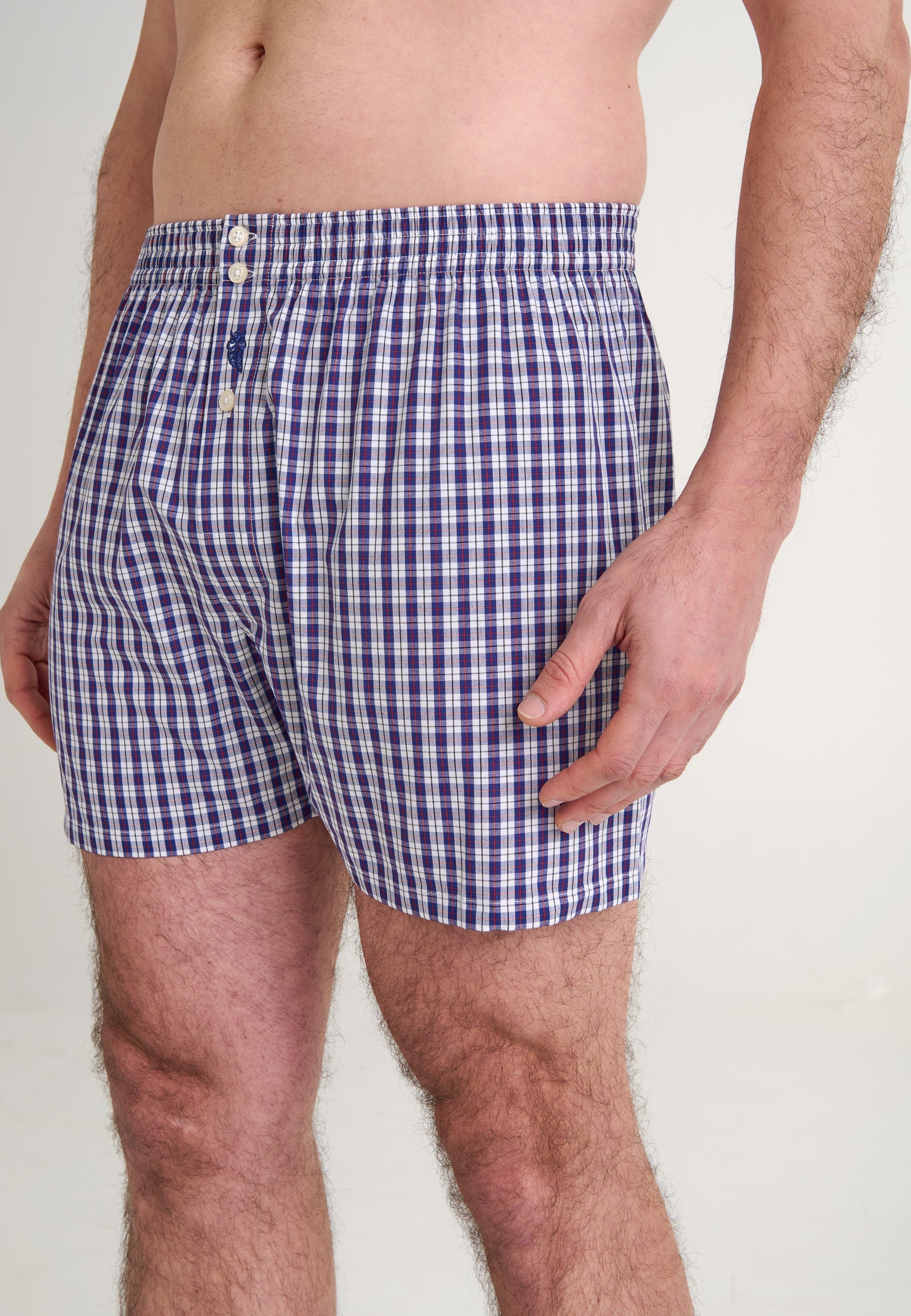 Calzoncillos bóxer de caballero clásicos en tela popelín. Edición "Essentials", confeccionado con tela popelín 100% algodón. Máxima suavidad, confort y resistencia. Bóxer a cuadros marino y blancos delimitados por rayas finas rojas.El fit regular, que permite una amplia libertad de movimiento, junto con la doble costura americana, garantizan una comodidad excepcional. Su diseño no es ajustado, lo que asegura una sensación de libertad y bienestar durante todo el día.