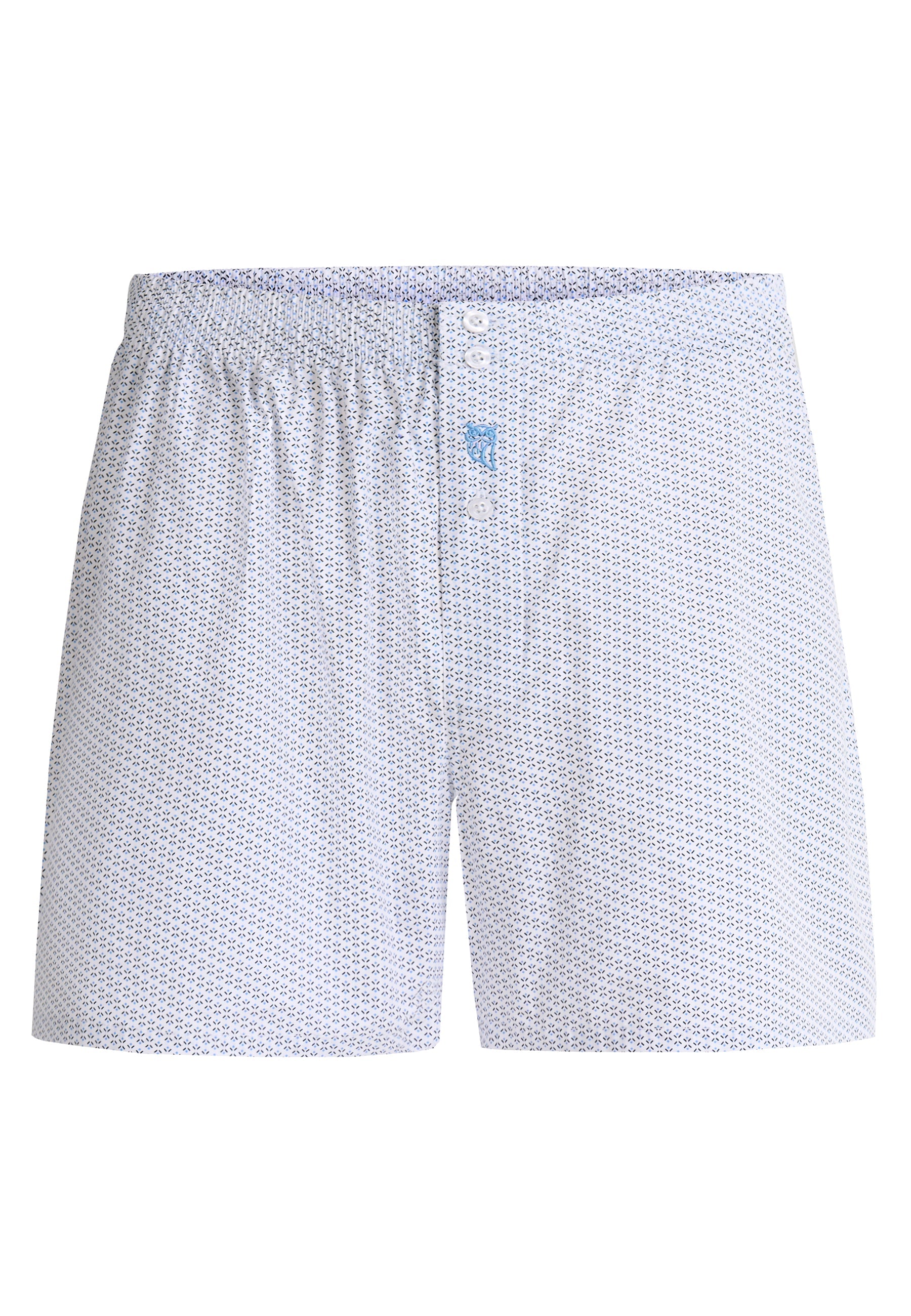 Calzoncillos bóxer de caballero clásicos en tela popelín. Edición "Essentials", confeccionado con tela popelín 100% algodón en cabos 50x50. Máxima suavidad, confort y resistencia. Bóxer estampado geométrico azul celeste. La costura americana en forma de U resulta mucho más cómoda que la costura tradicional, que transcurre por el medio de las nalgas. Fit regular, nuestros boxers permiten comodidad y amplitud de movimientos.