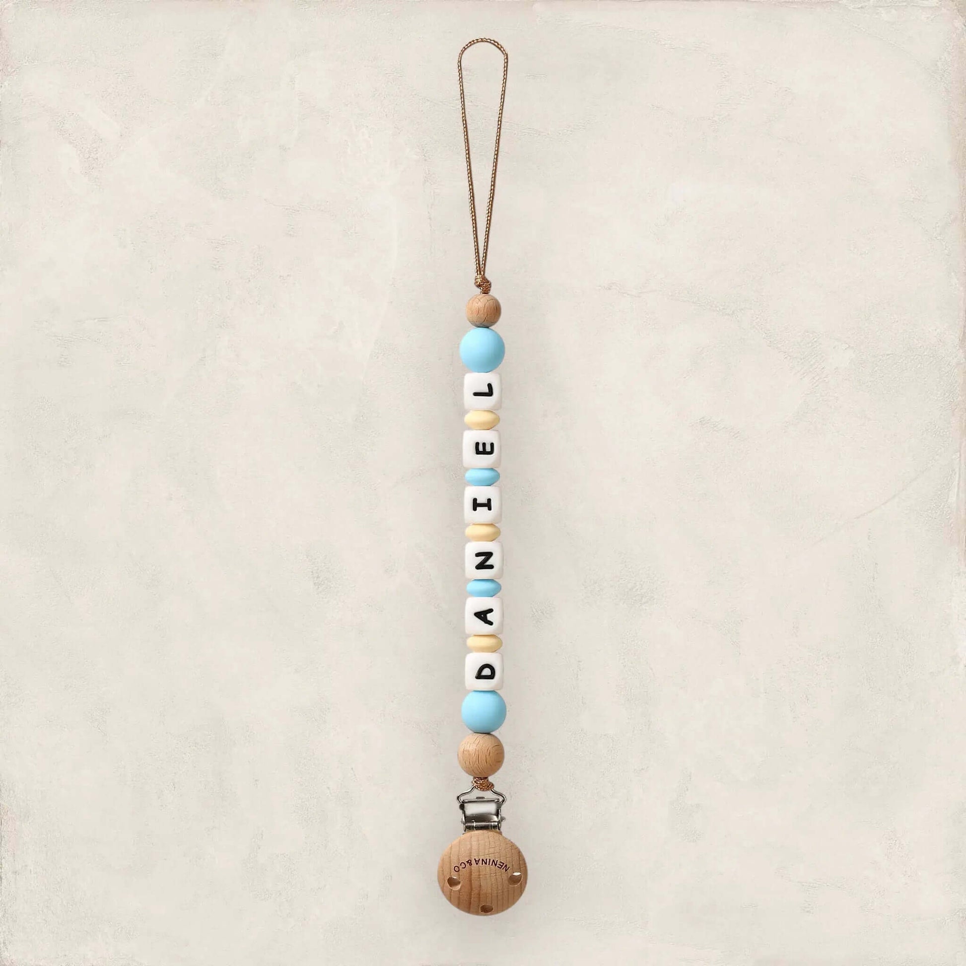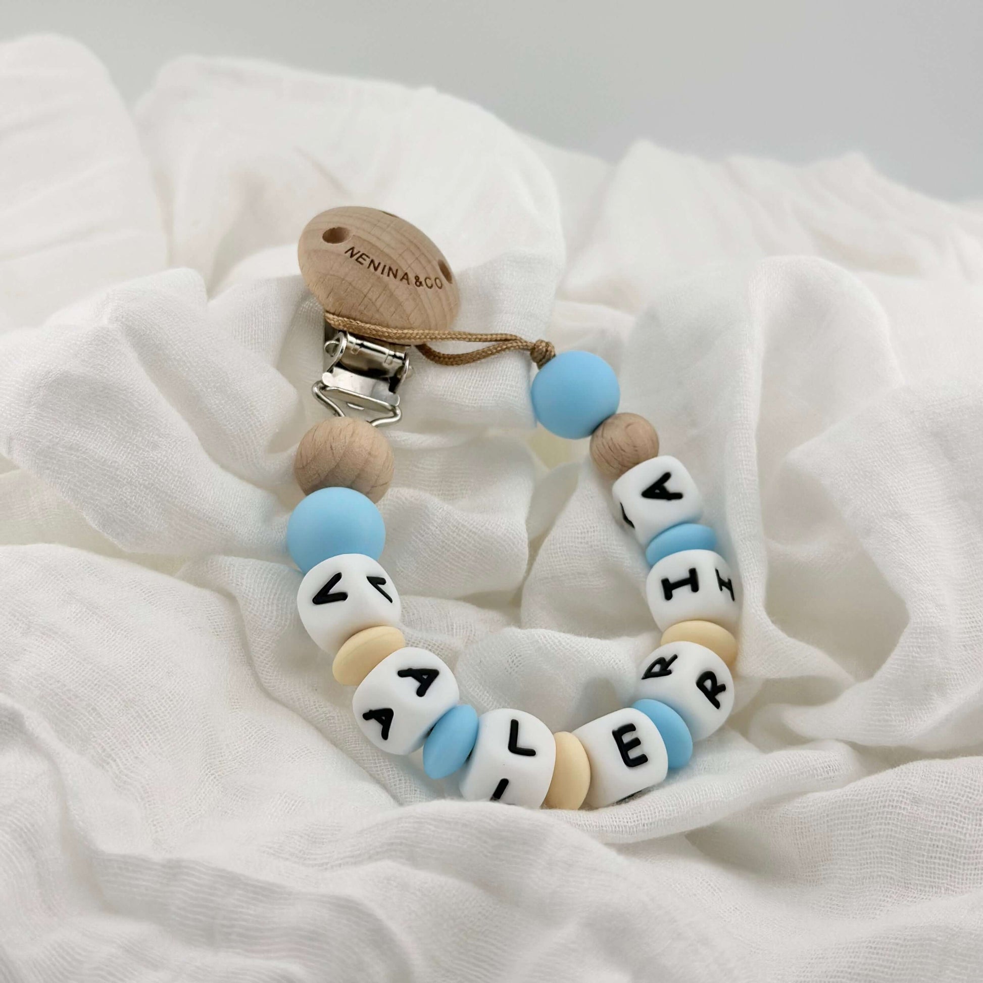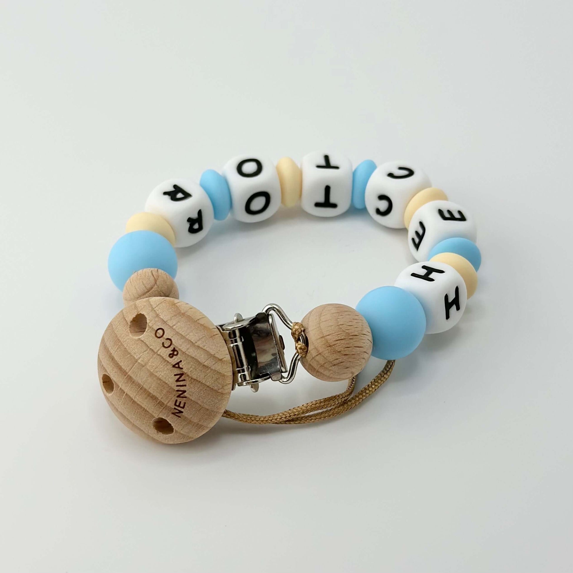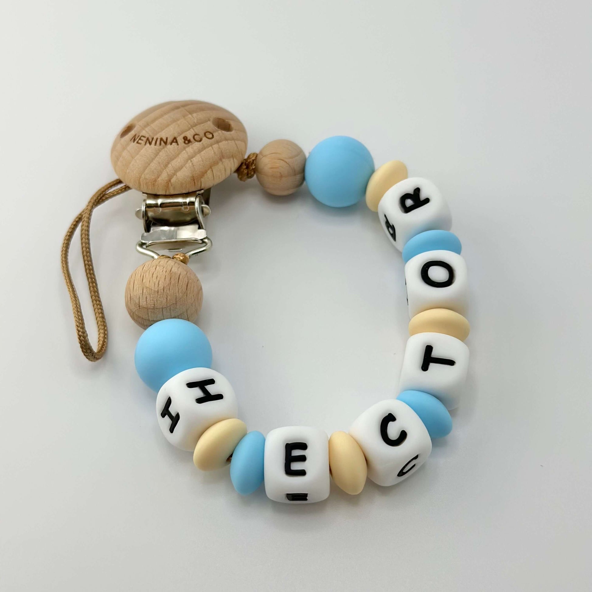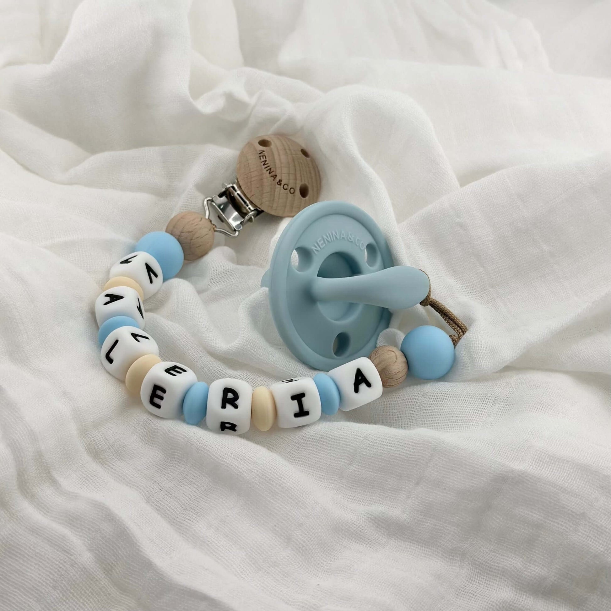 Kit Chupete Clásico Celeste de Silicona + Chupetero con Nombre | Nenina & Co.