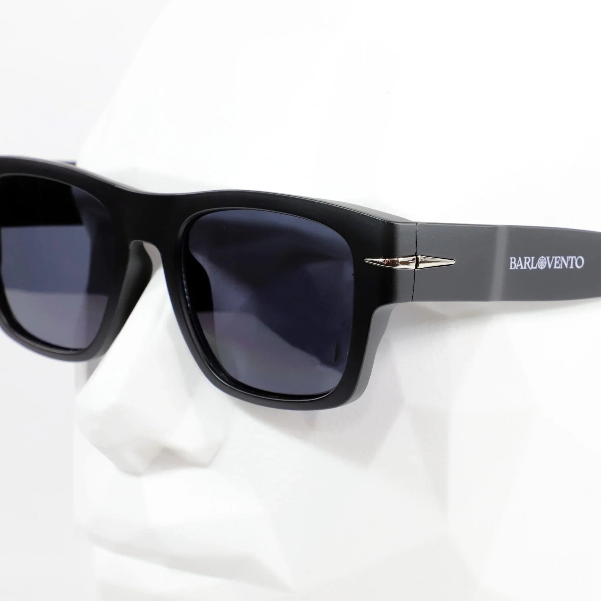 Estas gafas de sol cuadradas premium tienen montura negra ligera y lentes gris oscuro con protección UV400. Las patillas presentan un borde metálico minimalista, moderno y elegante.