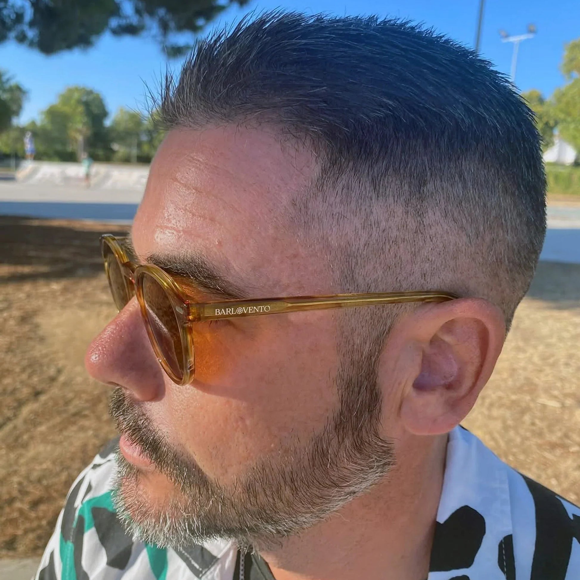 Torimbia · gafas de sol redondas de color naranja cristal con lentes marrones