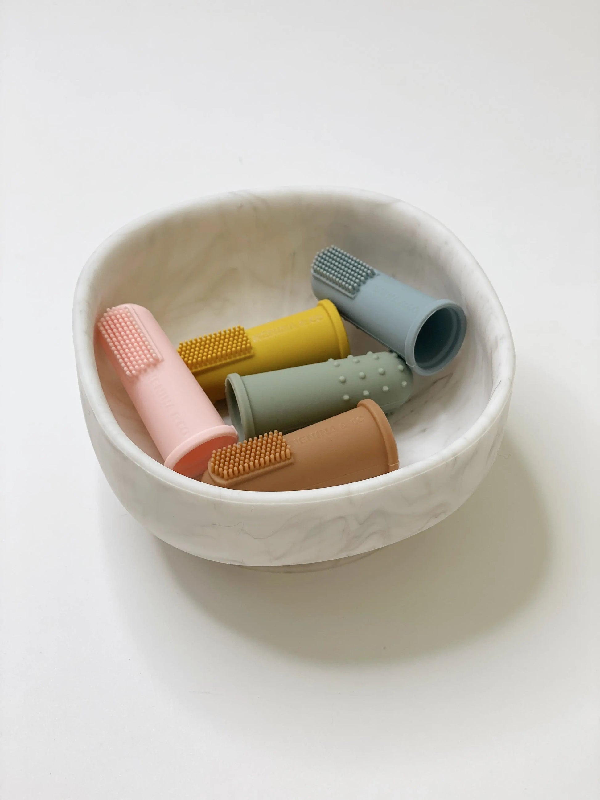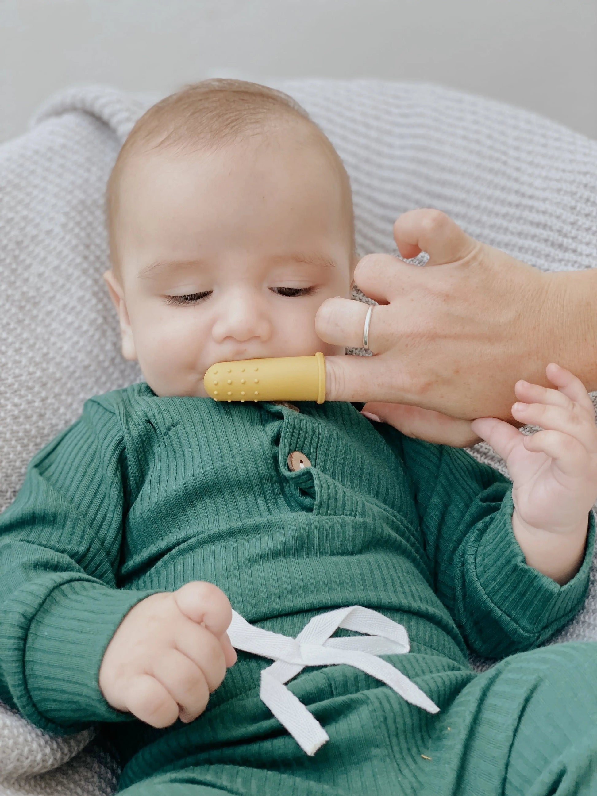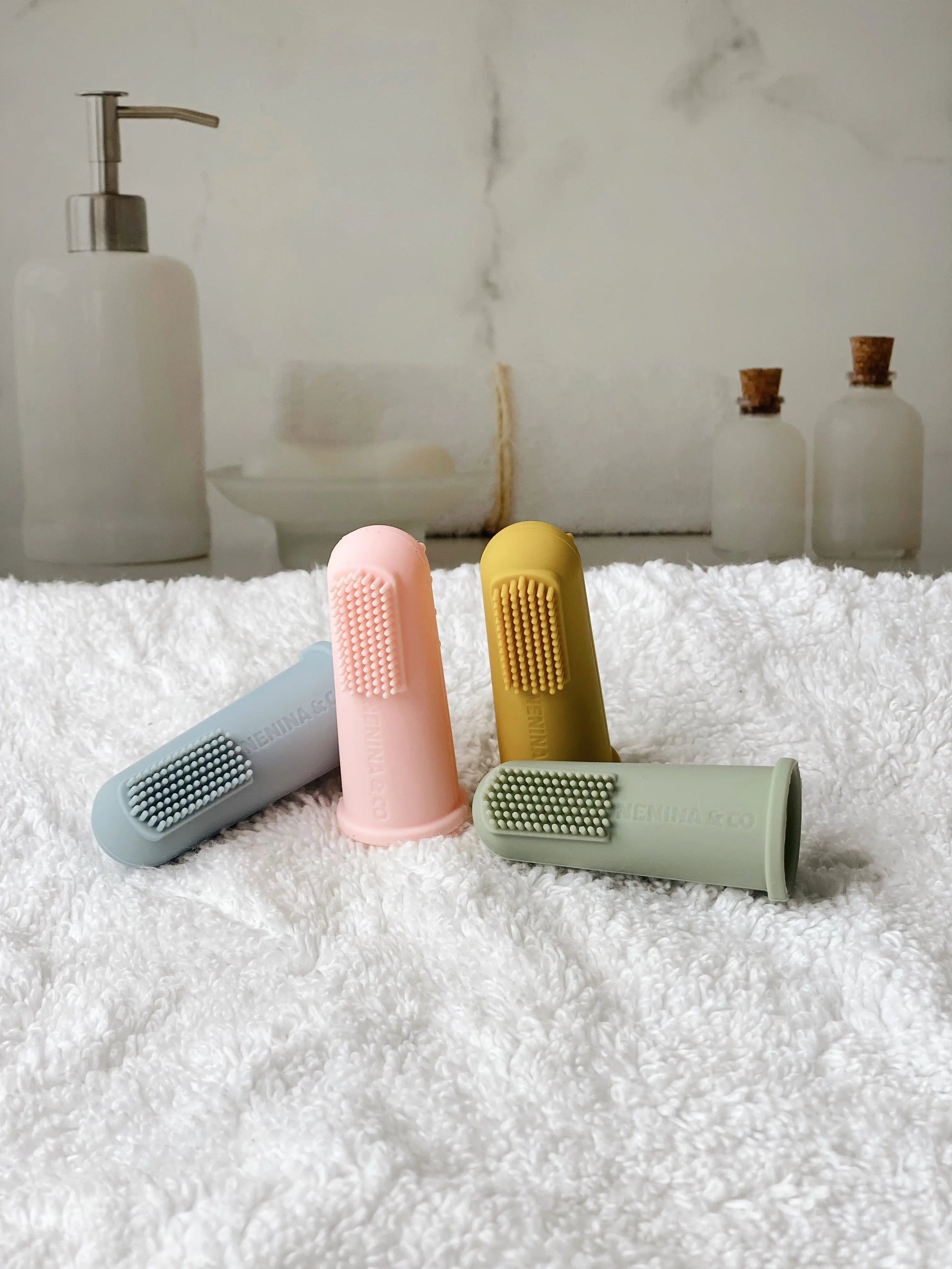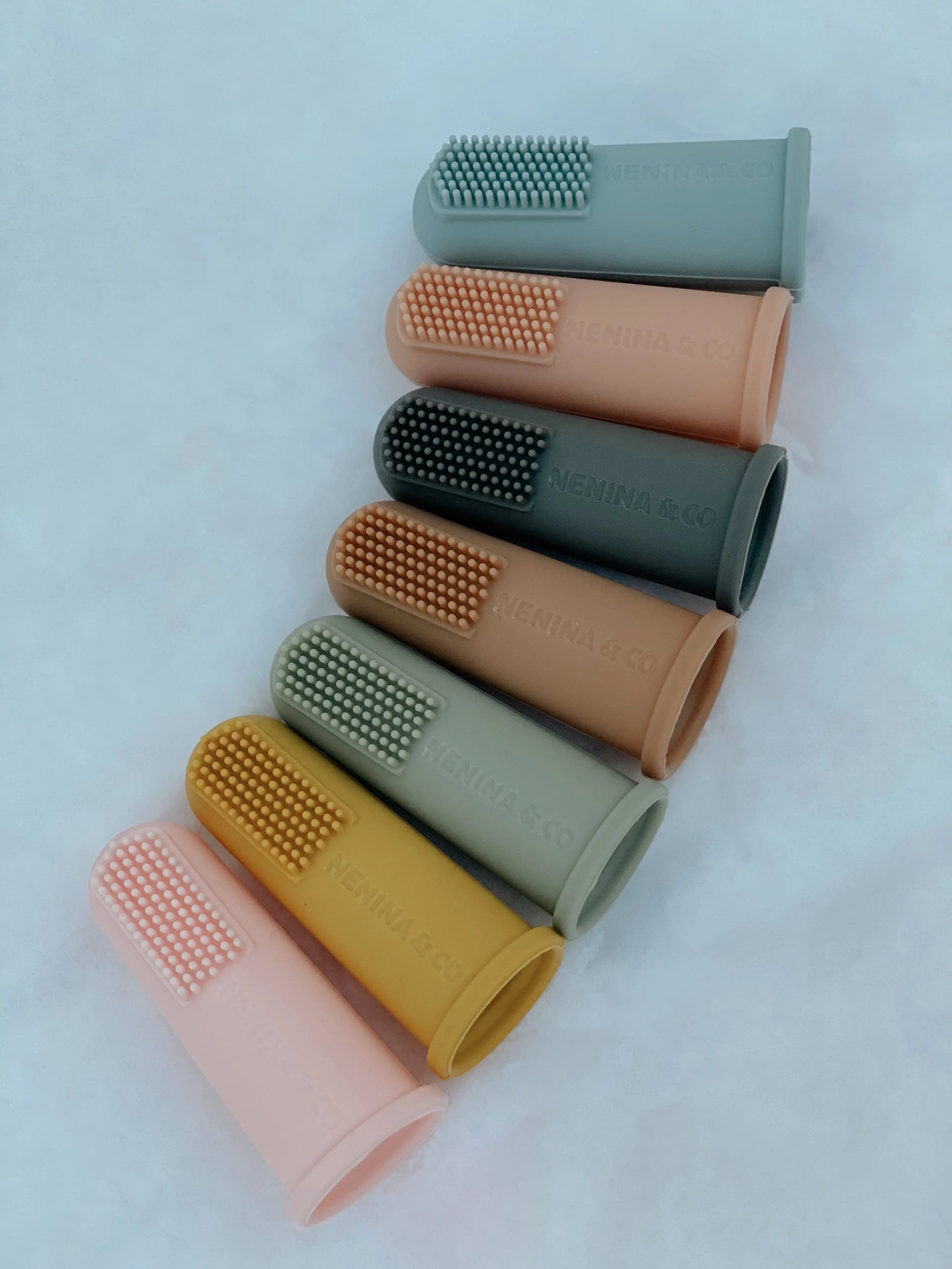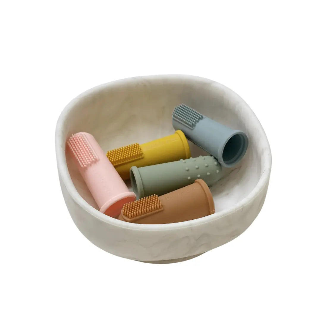 Los dedales o cepillos de dedo de silicona están diseñados para masajear y limpiar las encías, la lengua y las mejillas de los bebés.