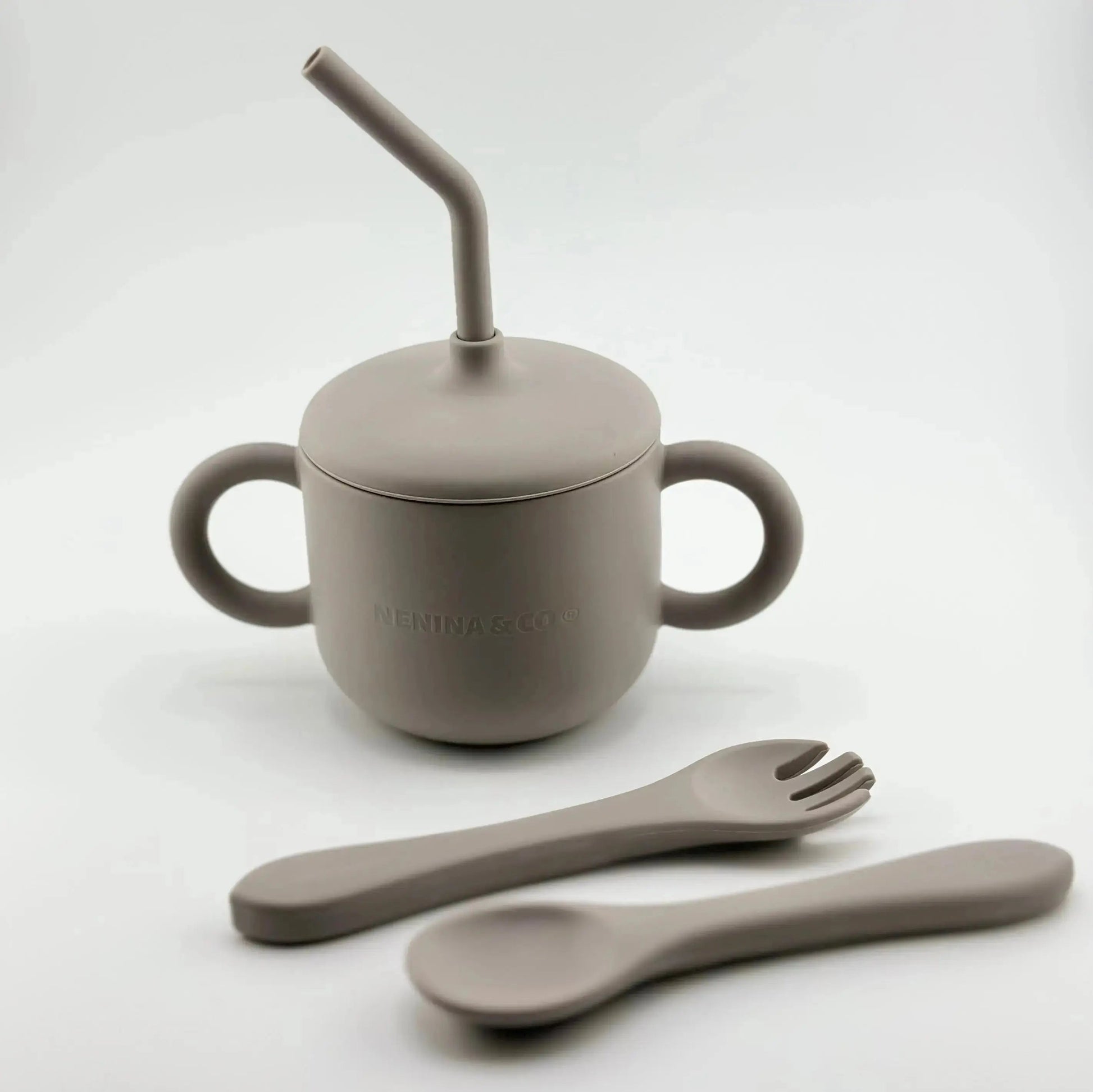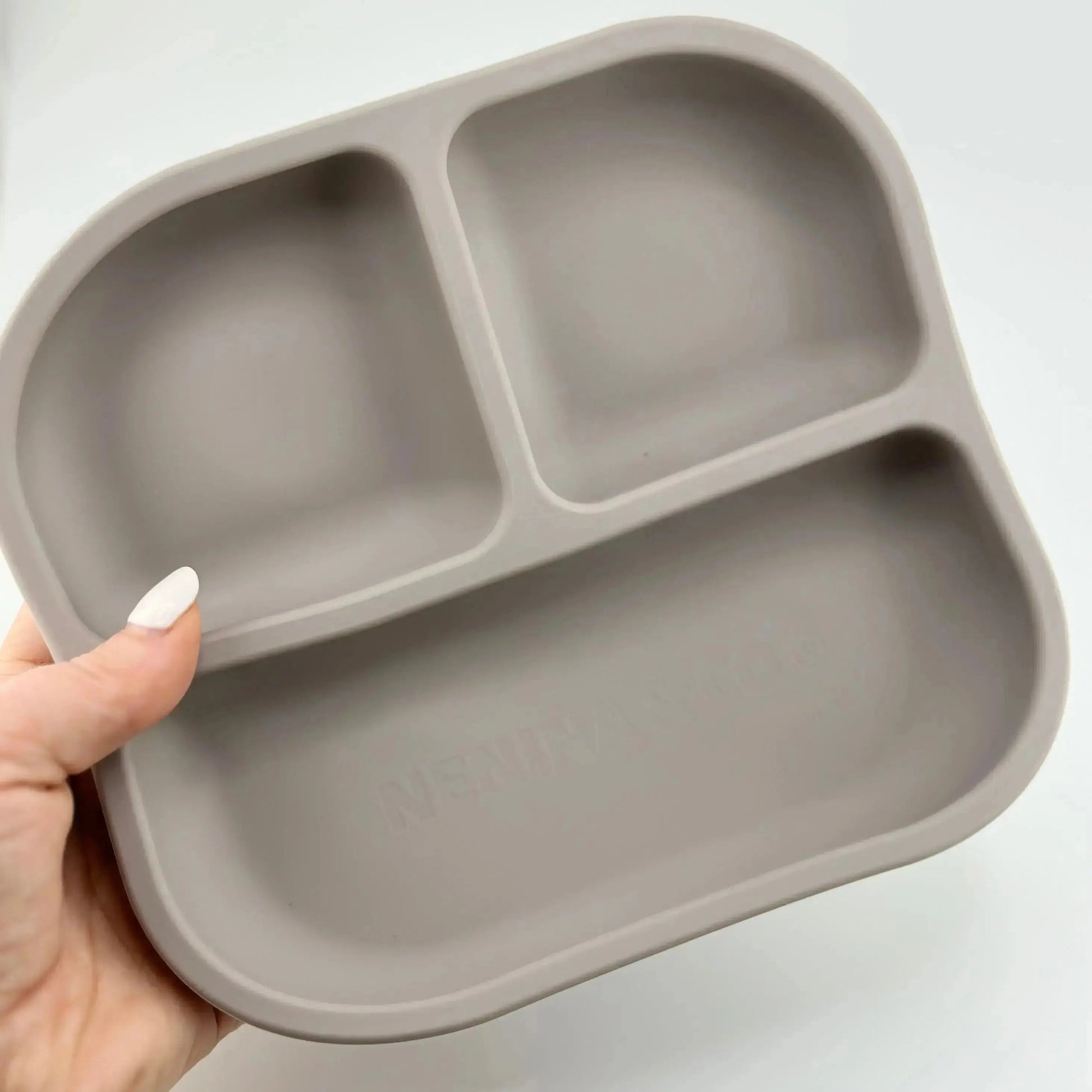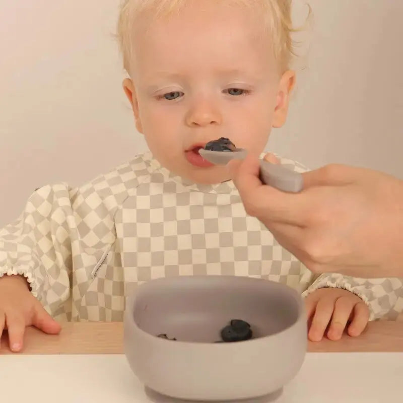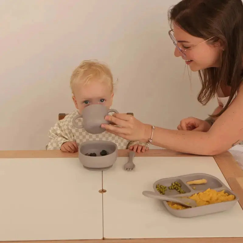 Kit Deluxe Vajilla + Babero BLW Gris 9 Piezas de Silicona orgánica con ventosas Nenina & Co