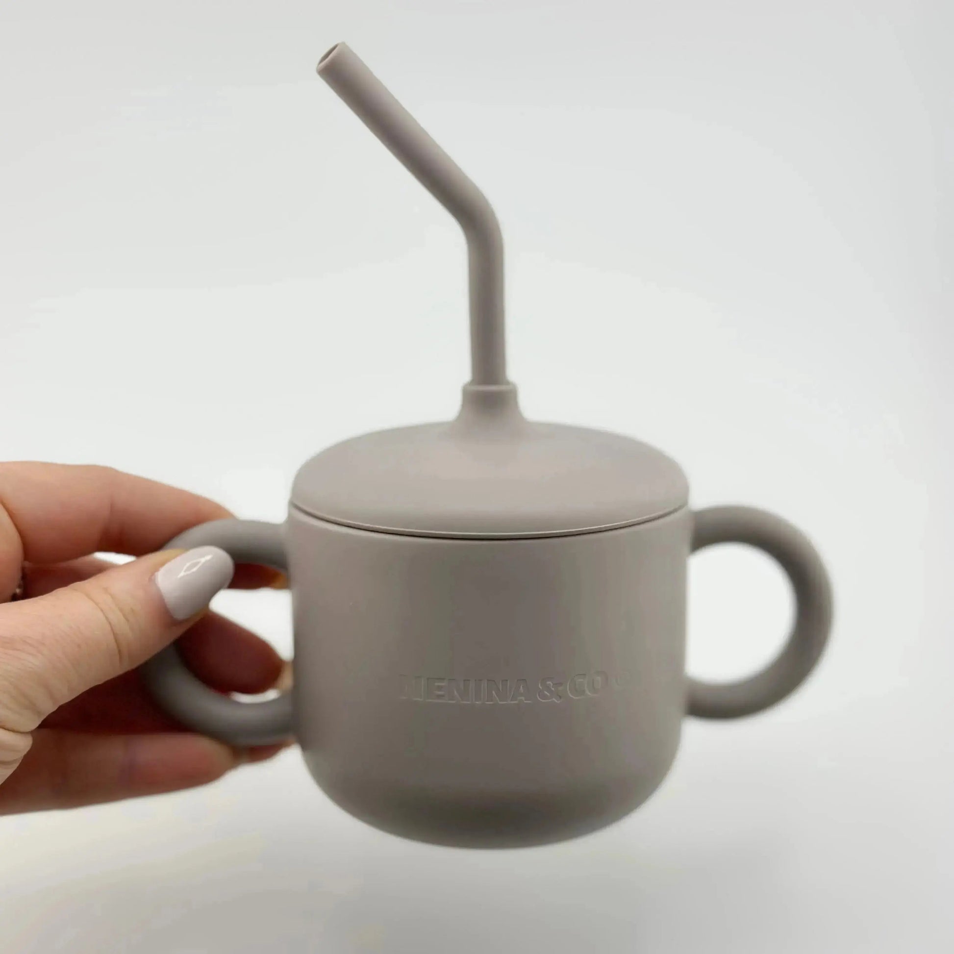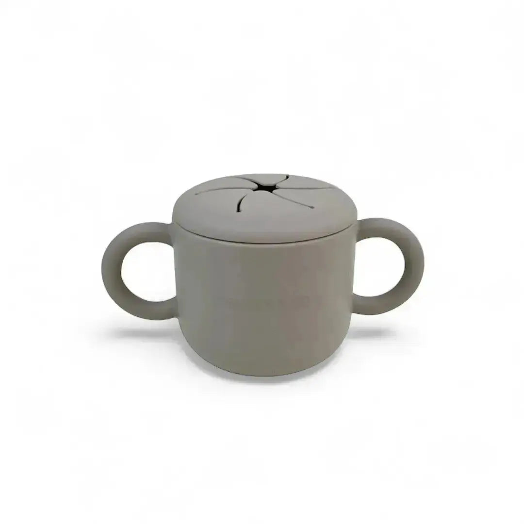 - Vaso con agarradera: Fácil de sujetar para manos pequeñas. Viene con una tapa con pico para usar como vaso para líquidos y una pajita incluida, o puedes convertirlo en un vaso para snacks con la tapa adicional.