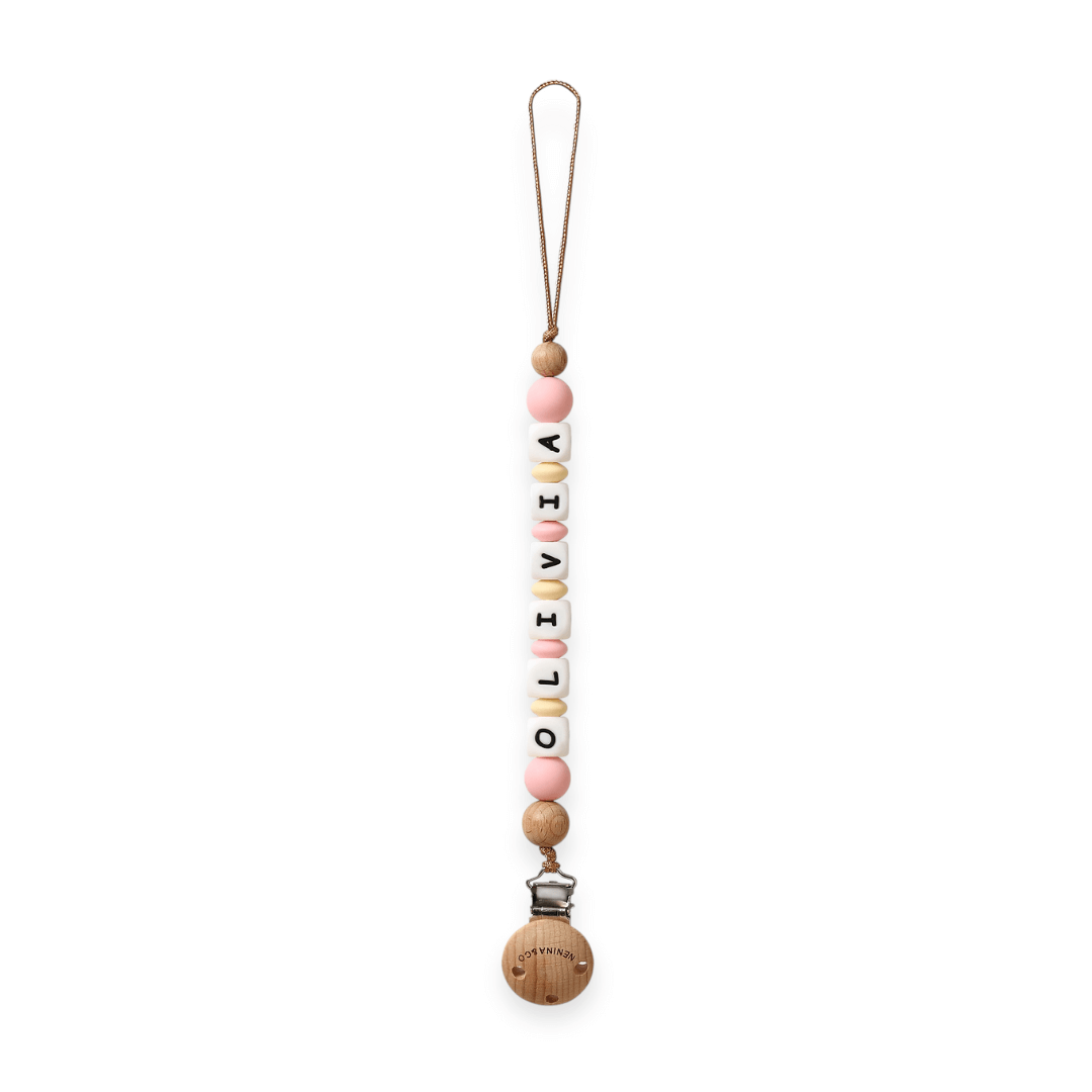 Nuestros chupeteros personalizados son más que un accesorio: son recuerdos que acompañan desde el primer día. Están elaborados con silicona orgánica de alta calidad, suaves al tacto, resistentes y completamente seguros. Combinan a la perfección con nuestros chupetes clásicos y DIAMOND de Nenina & Co. para crear un conjunto lleno de estilo y ternura.