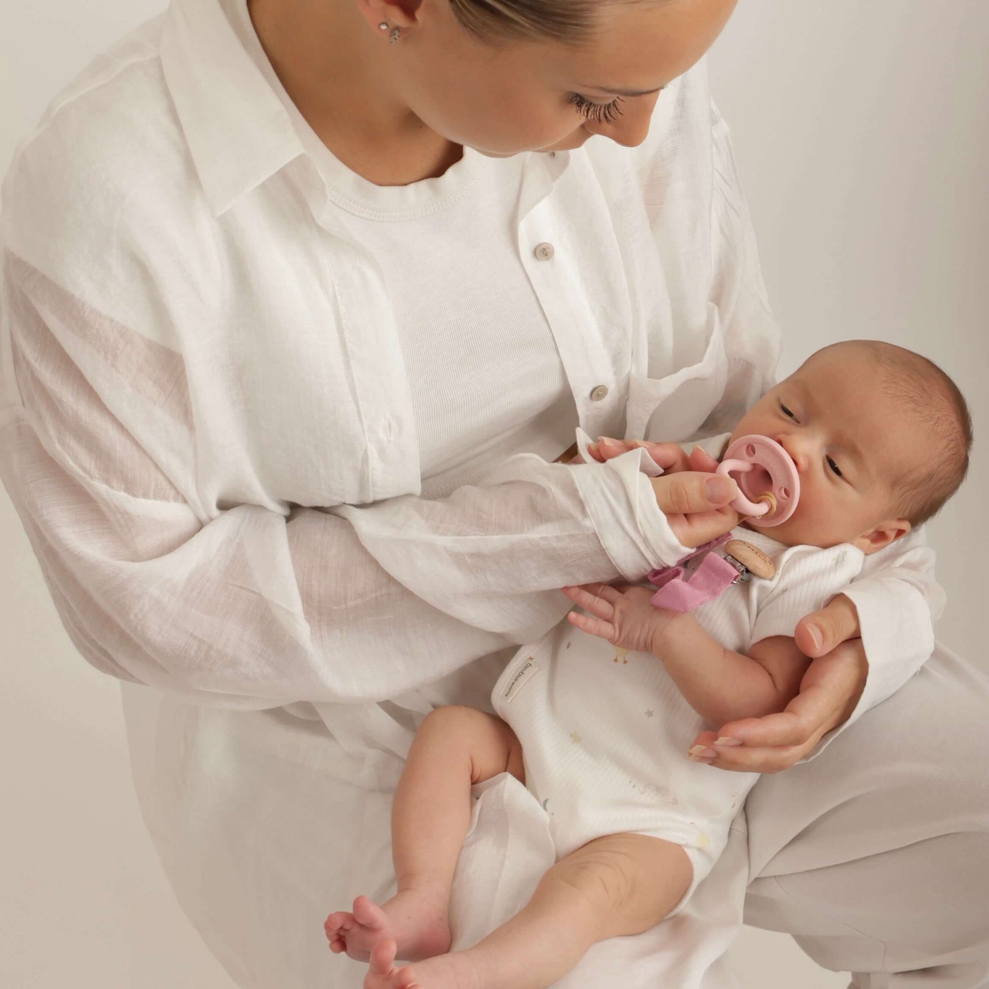 Pack de 2 Chupeteros de Algodón Orgánico: Hechos con algodón orgánico suave, estos chupeteros son ideales para mantener el chupete de tu bebé siempre a mano y evitar caídas o pérdidas. Su diseño seguro se engancha fácilmente a la ropa, proporcionando funcionalidad y estilo.