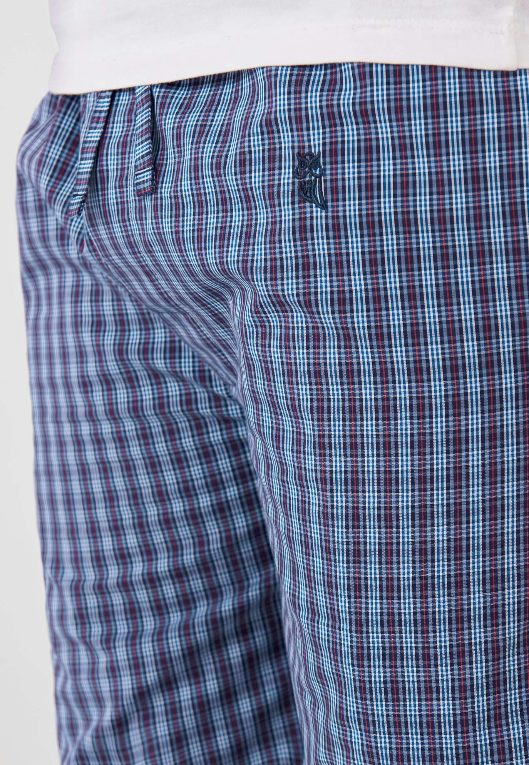 Pantalón largo de pijama de hombre clásico a cuadros pequeños granates y blancos. Edición "Essentials", confeccionados en tela popelín 100% algodón, suavidad, gran definición del color y resistencia. Fit regular con perneras holgadas. Pantalón agradable al tacto, muy confortable. Logo bordado en color marino. Diseñado con dos costuras con dos bolsillos laterales y bragueta a dos botones verticales cubierta por tela, que permite desabrocharlo por completo. Cintura elástica con cinta a juego personalizada que permite un mayor ajuste del pantalón.