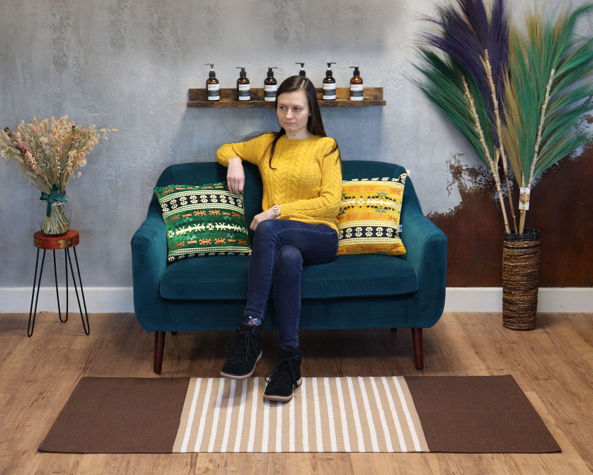 Alfombra India de Algodón - 70x170cm - Marrón Oscuro / Beige