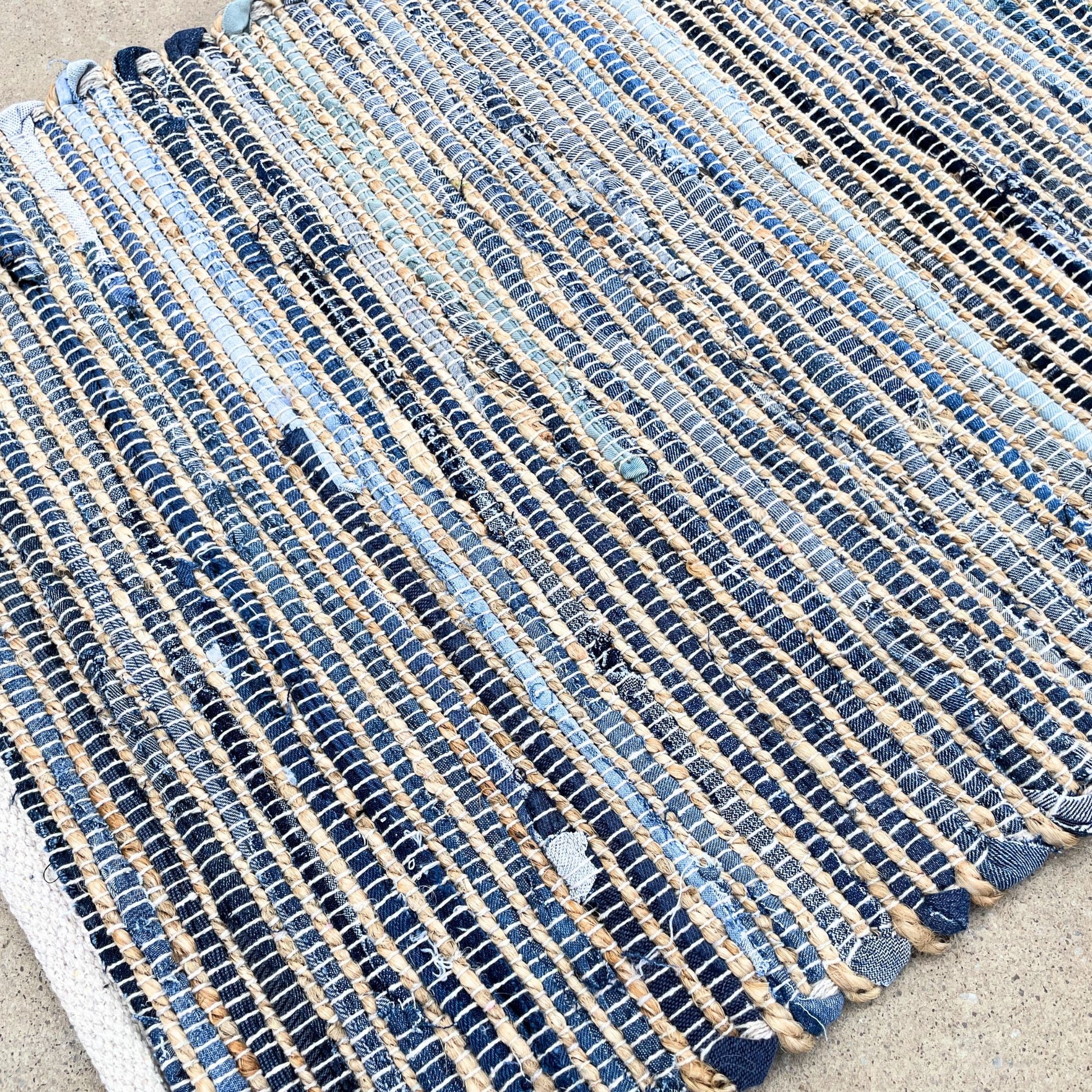 Alfombra pequeña de yute de algodón reciclado - 50x90cm - Azul