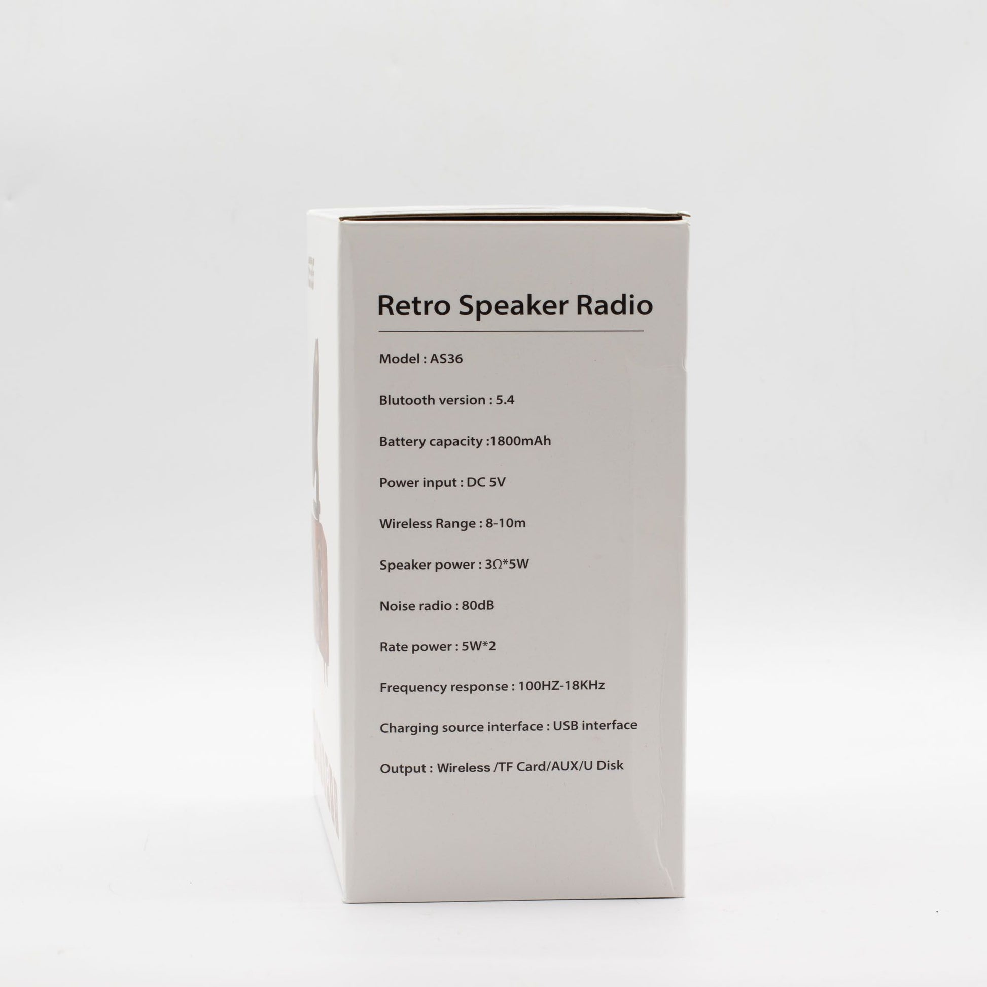 Diseñado para escuchar en casa, este modelo cuenta con Bluetooth 5.4 para una conexión inalámbrica estable dentro de aproximadamente 8–10 metros. En su interior hay dos altavoces de 5,4 W, que proporcionan un sonido más lleno y equilibrado que los diseños retro de un solo altavoz. La batería recargable integrada de 1800 mAh se alimenta a través de USB (DC 5V), lo que facilita recargarla desde enchufes estándar o bancos de energía.