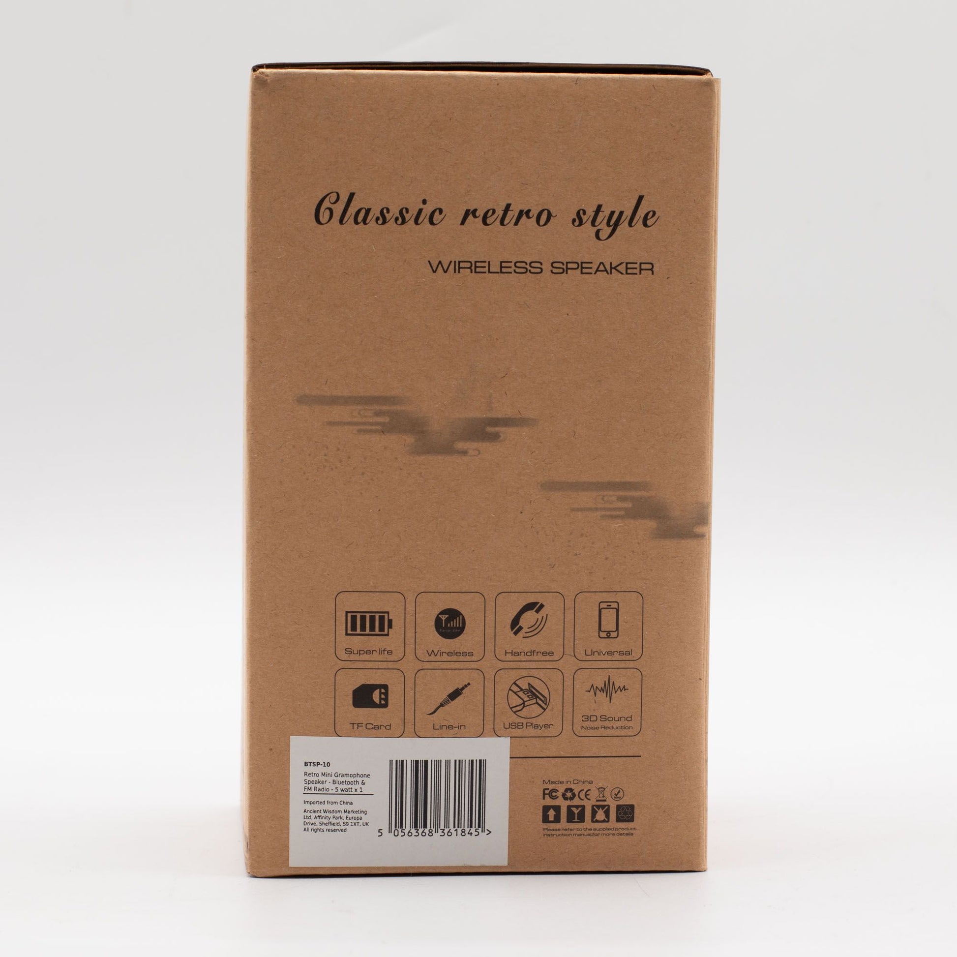 Altavoz mini gramófono retro - Bluetooth y radio FM - 5 vatios x 1