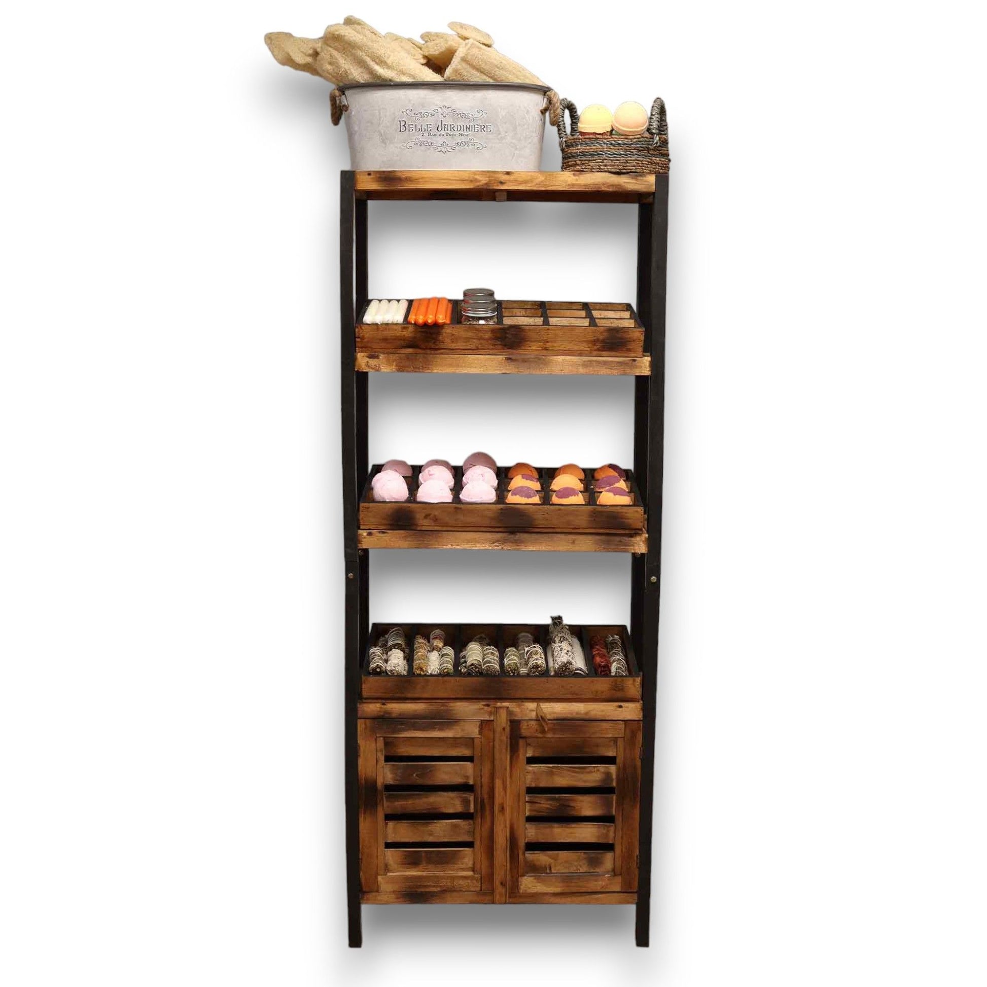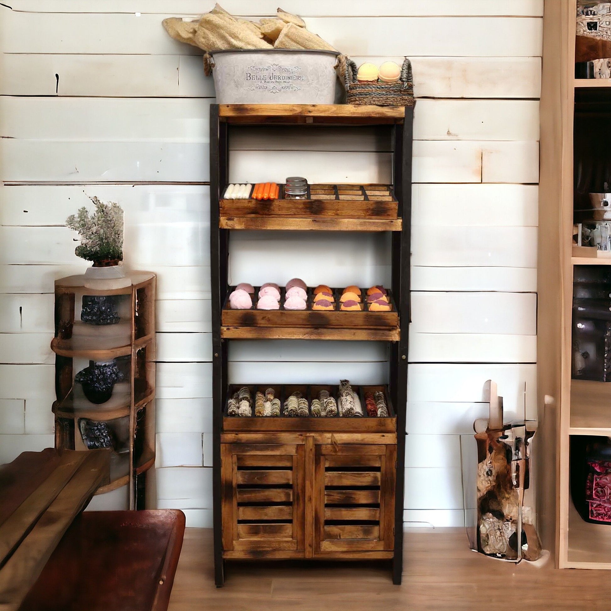 Transformará tu espacio comercial u hogar en una galería atractiva, donde cada artículo se presenta con cuidado para despertar la curiosidad y el deseo. Importado directamente de Indonesia y fabricado con madera premium de albasia, combina belleza y funcionalidad de forma impecable.