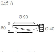 - Incluye válvula horizontal atornillada de Ø 90 mm y altura 60mm