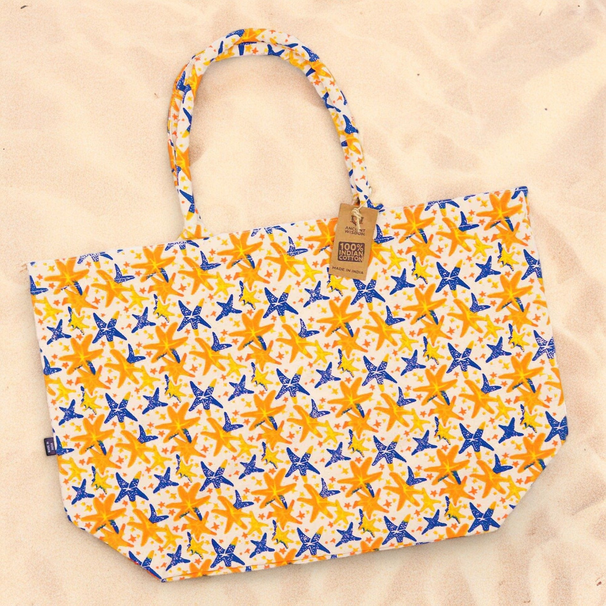 El bolso grande Estrella de Mar, es una pieza encantadora. Su vibrante diseño y sus tonos azules y amarillos evocan la belleza del océano, por lo que es perfecta para una gran variedad de ocasiones, desde viajes a la playa hasta ir de compras.