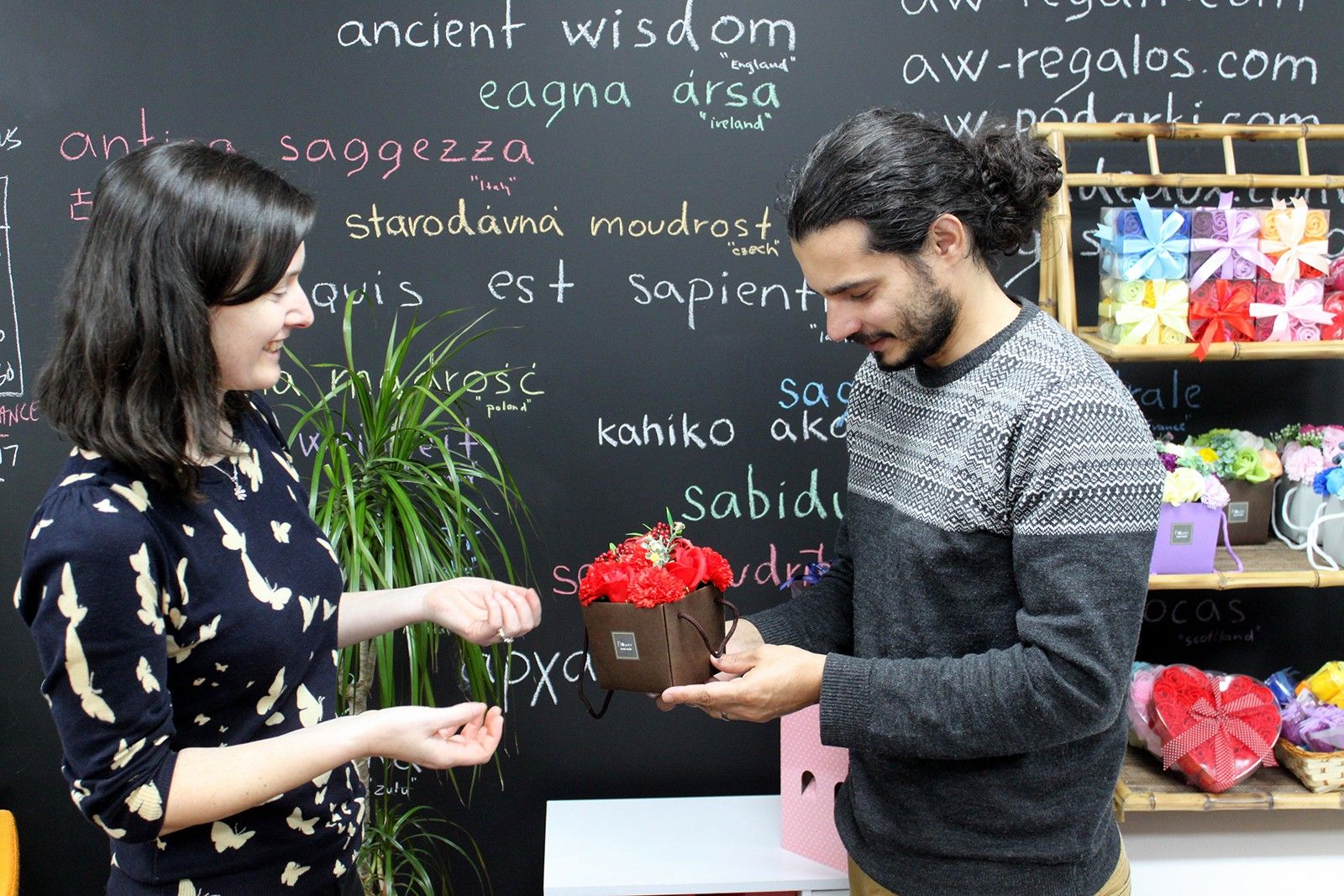 Un regalo visualmente impactante y fragante que combina la belleza de un ramo de flores con la utilidad del jabón. Su diseño en rosas y morado es romántico y sofisticado
