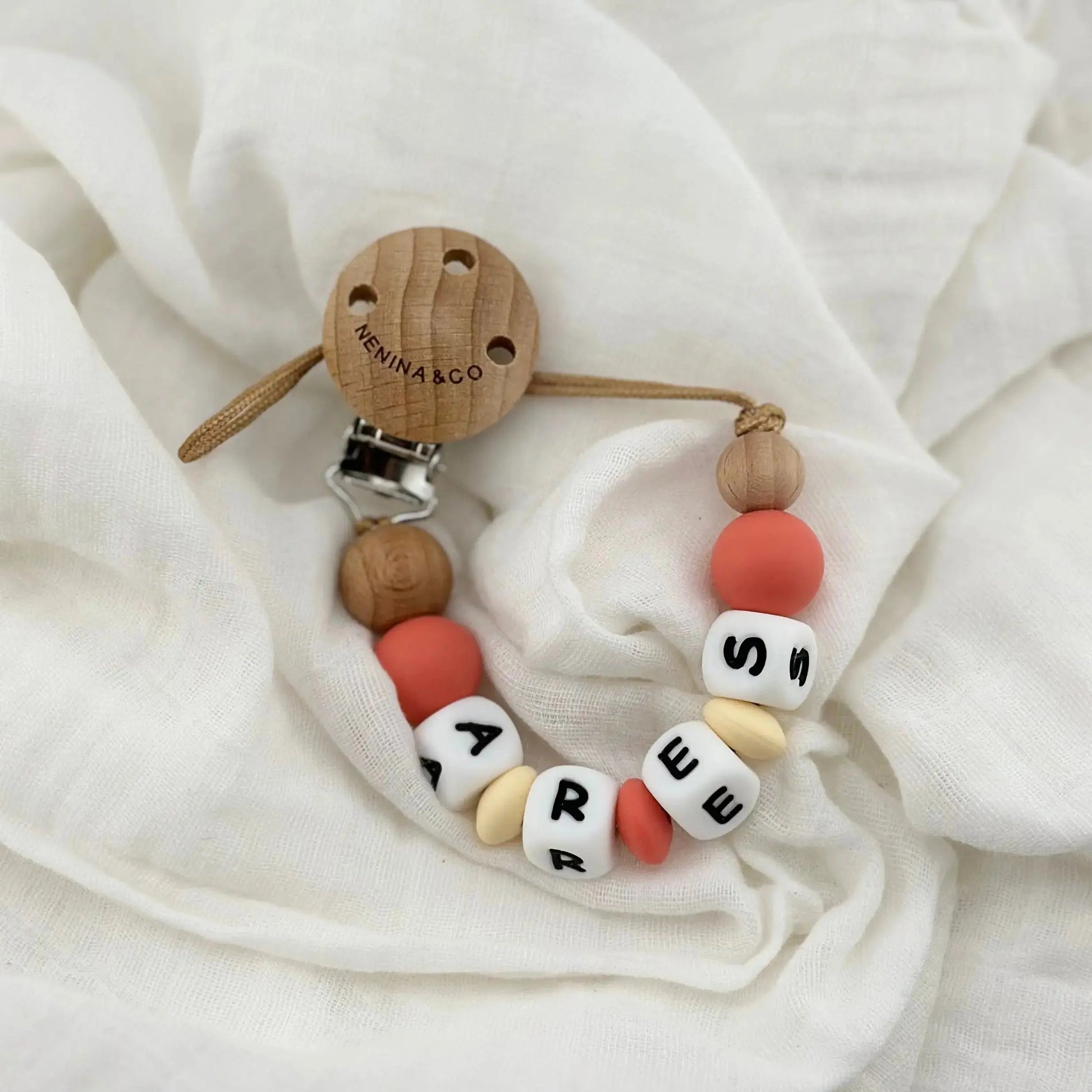 Nuestros chupeteros personalizados son más que un accesorio: son recuerdos que acompañan desde el primer día. Están elaborados con silicona orgánica de alta calidad, suaves al tacto, resistentes y completamente seguros. Combinan a la perfección con nuestros chupetes clásicos y DIAMOND de Nenina & Co. para crear un conjunto lleno de estilo y ternura.
