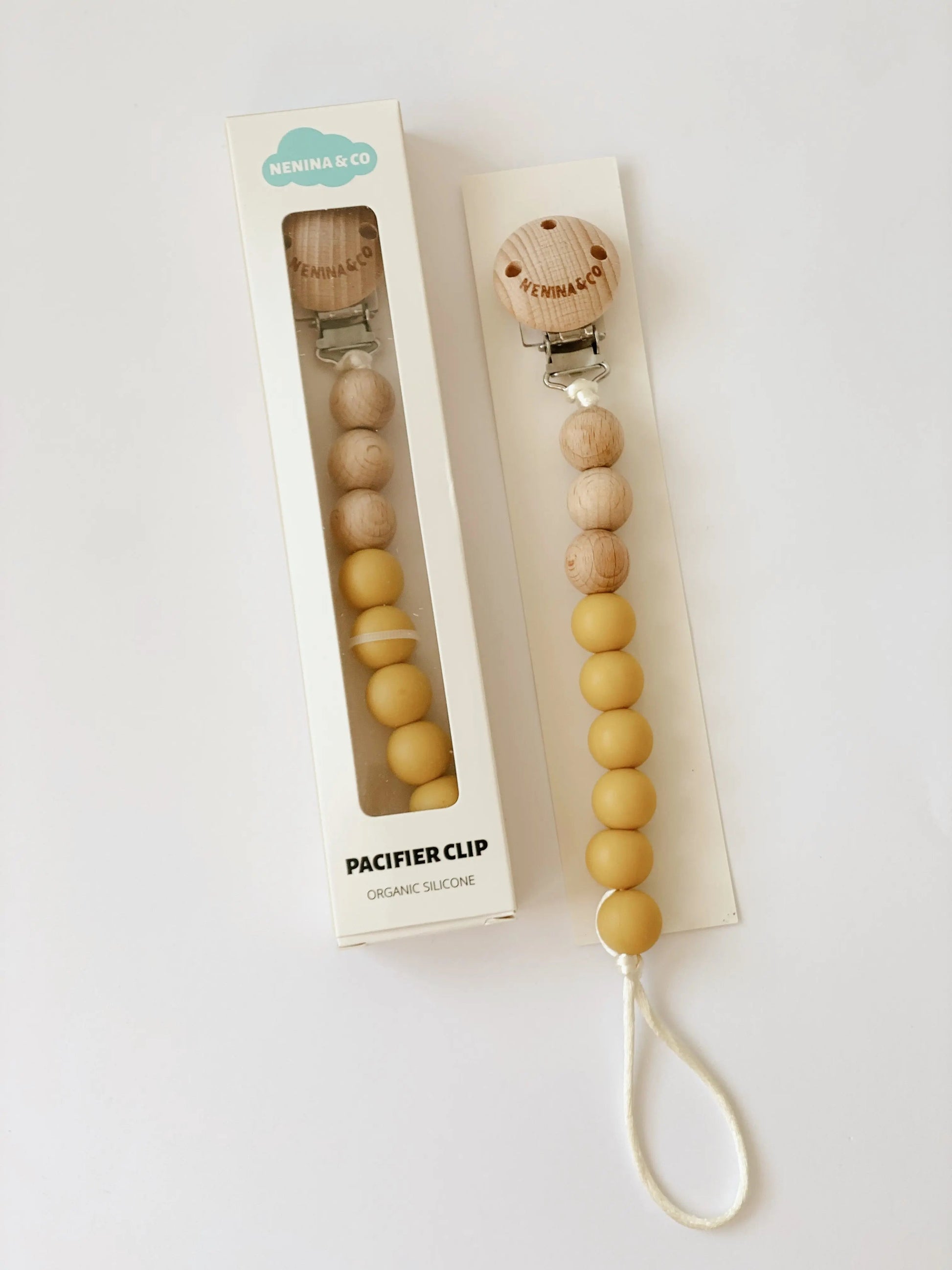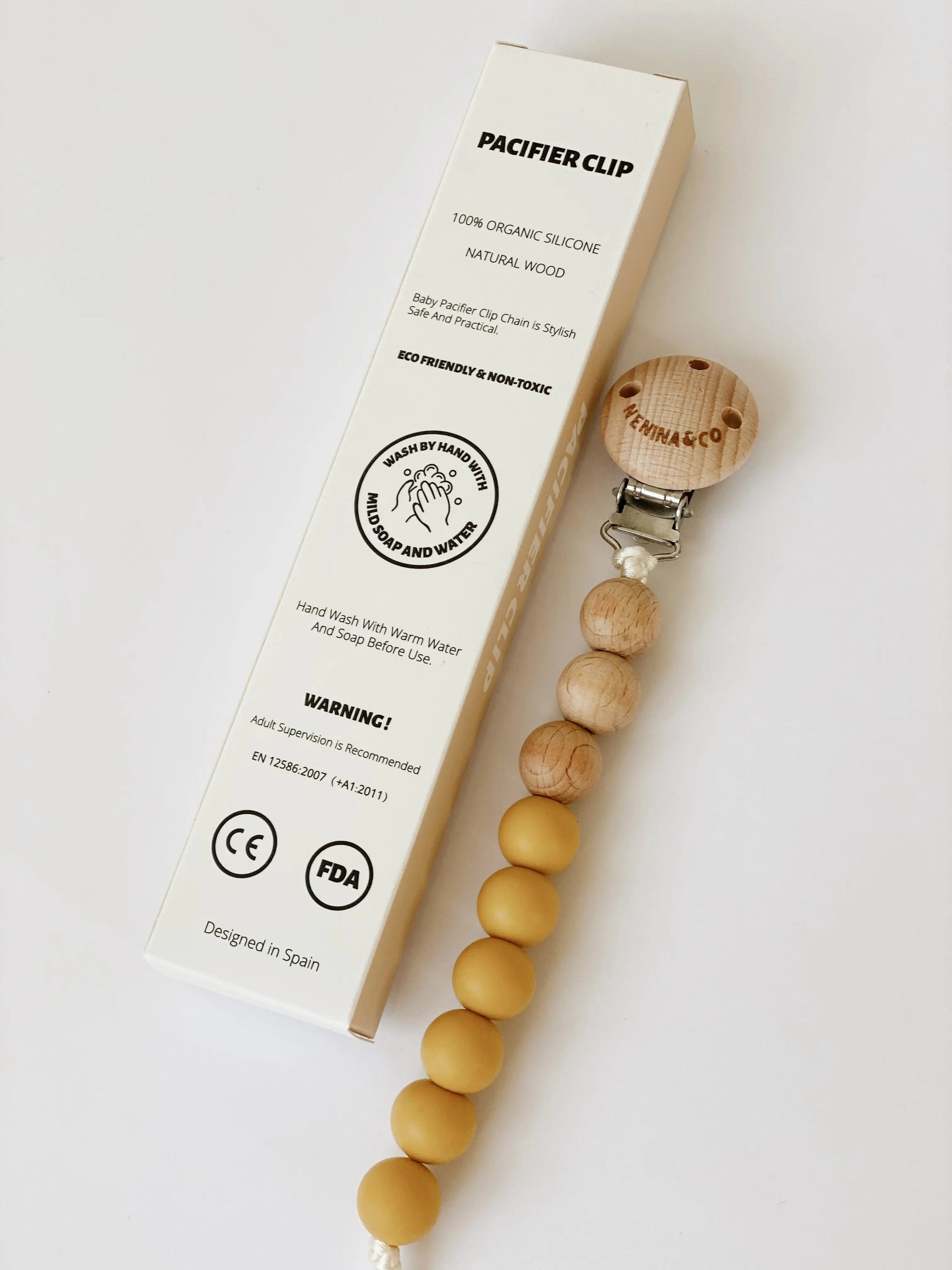 Material: Silicona Orgánica , Madera Ecológica y su broche es totalmente libre de plomo.