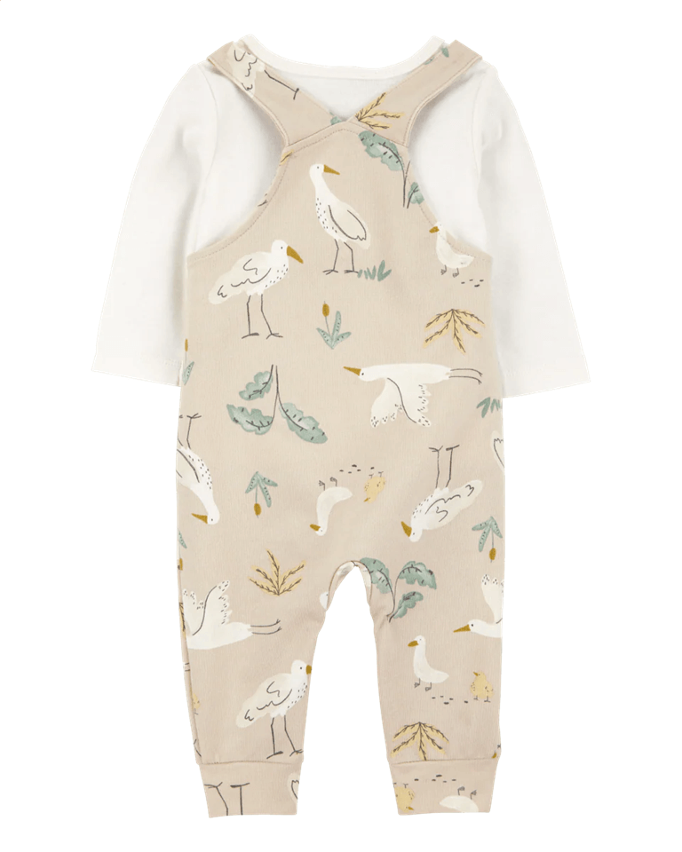 Este conjunto de dos piezas es perfecto para el día a día de tu bebé. Incluye una camiseta de manga larga con un encantador estampado de aves y un peto fácil de poner, ideal para mantener a tu pequeño cómodo y abrigado. Los prácticos botones a presión en las piernas permiten cambios rápidos y sencillos. Un conjunto ideal para bebés que combina estilo y comodidad.