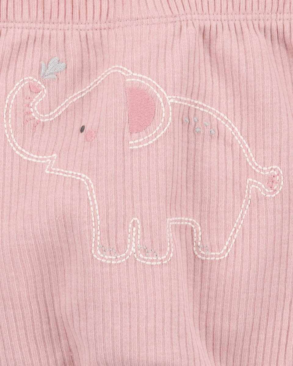 Conjunto tres piezas de algodón, pantalón y dos bodies, diseño elefantes