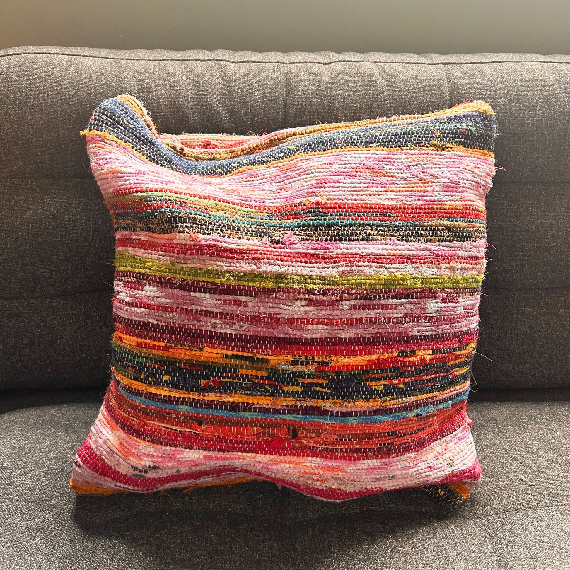 Funda para Cojín de Tapete Reciclado - 40x40cm - Azul y Rojos