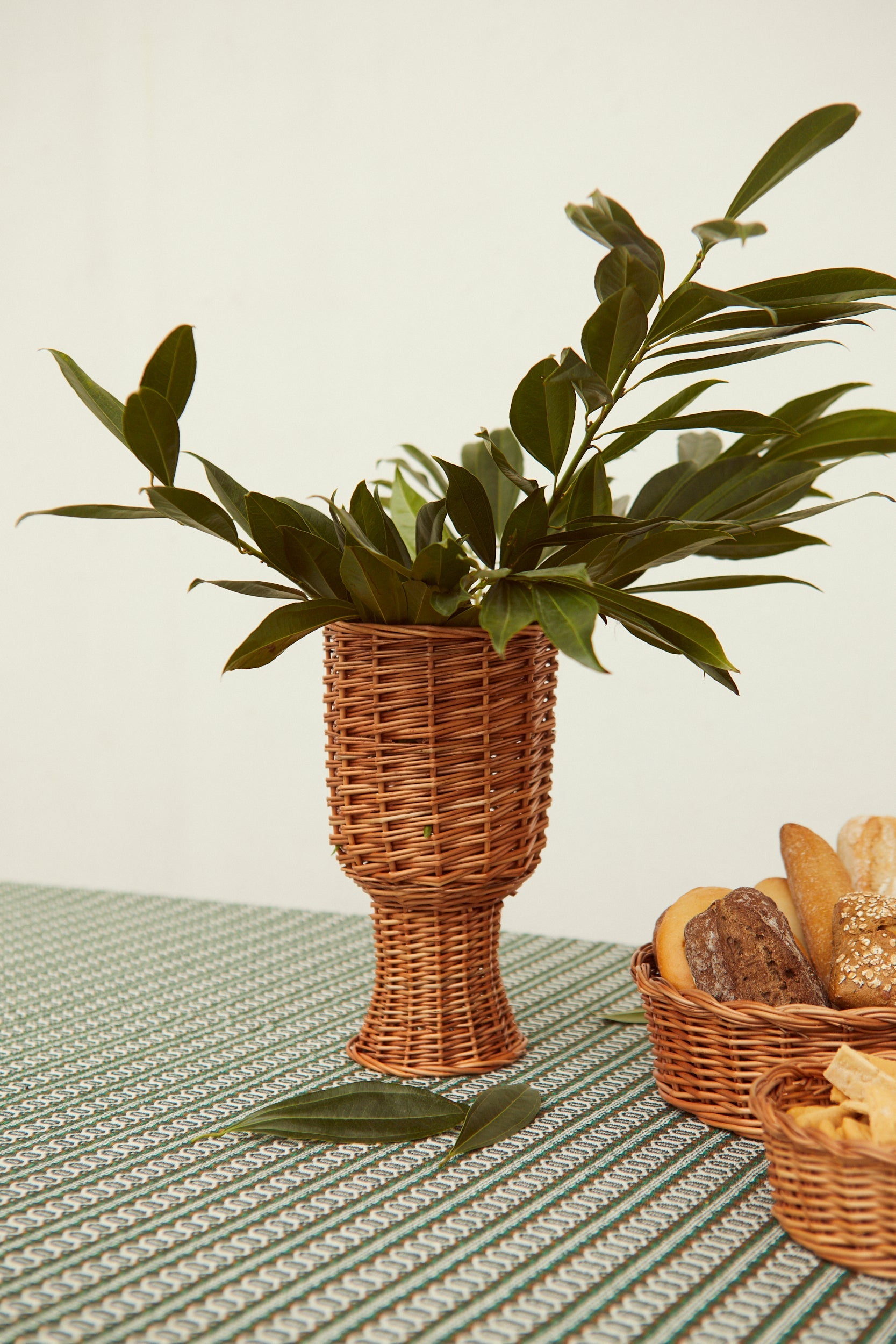 Dale un toque especial a cualquier rincón con nuestra copa decorativa de mimbre. Con su diseño elevado y estructura trenzada, es el complemento perfecto para lucir tus flores favoritas de una manera única y elegante. Aporta naturalidad y frescura a cualquier ambiente, mientras realzas la belleza de tus arreglos florales. ¡Ideal para quienes buscan un toque de distinción y carácter artesanal en la decoración de su hogar!