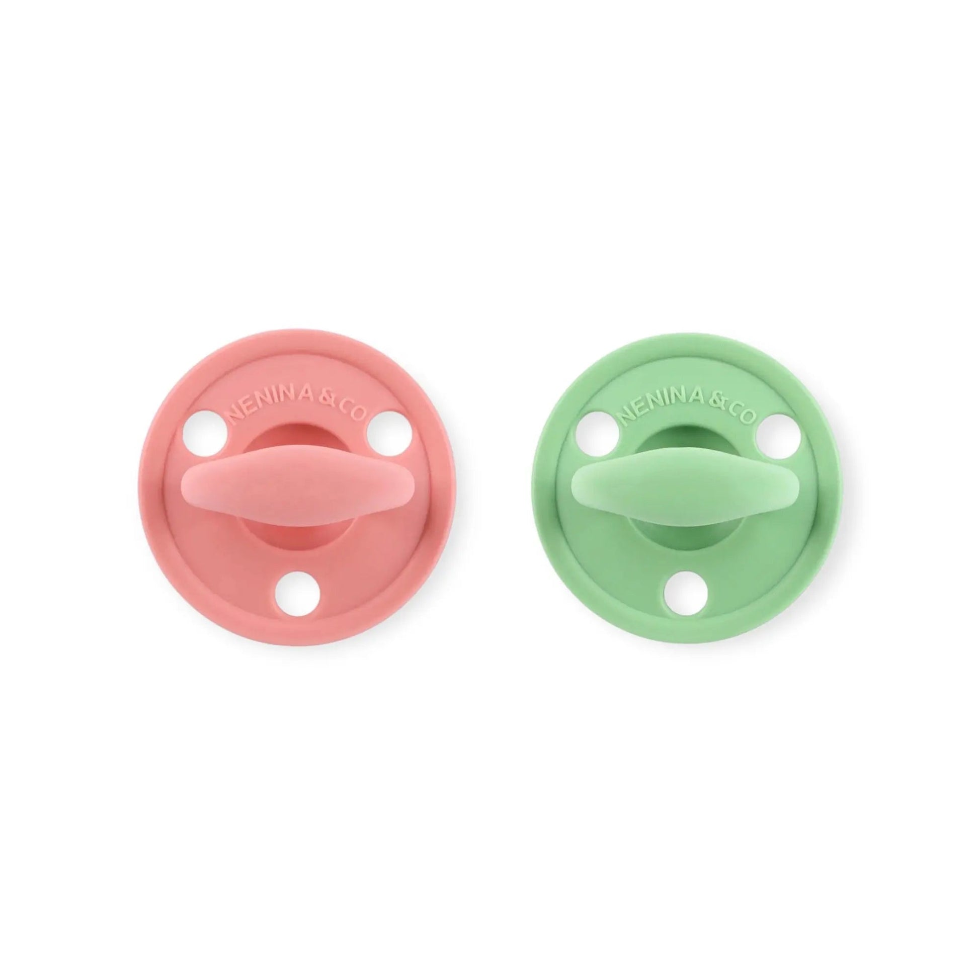 Kit 2 Chupetes Clásicos para Bebé Rosa y Oliva | Silicona Orgánica Nenina & Co