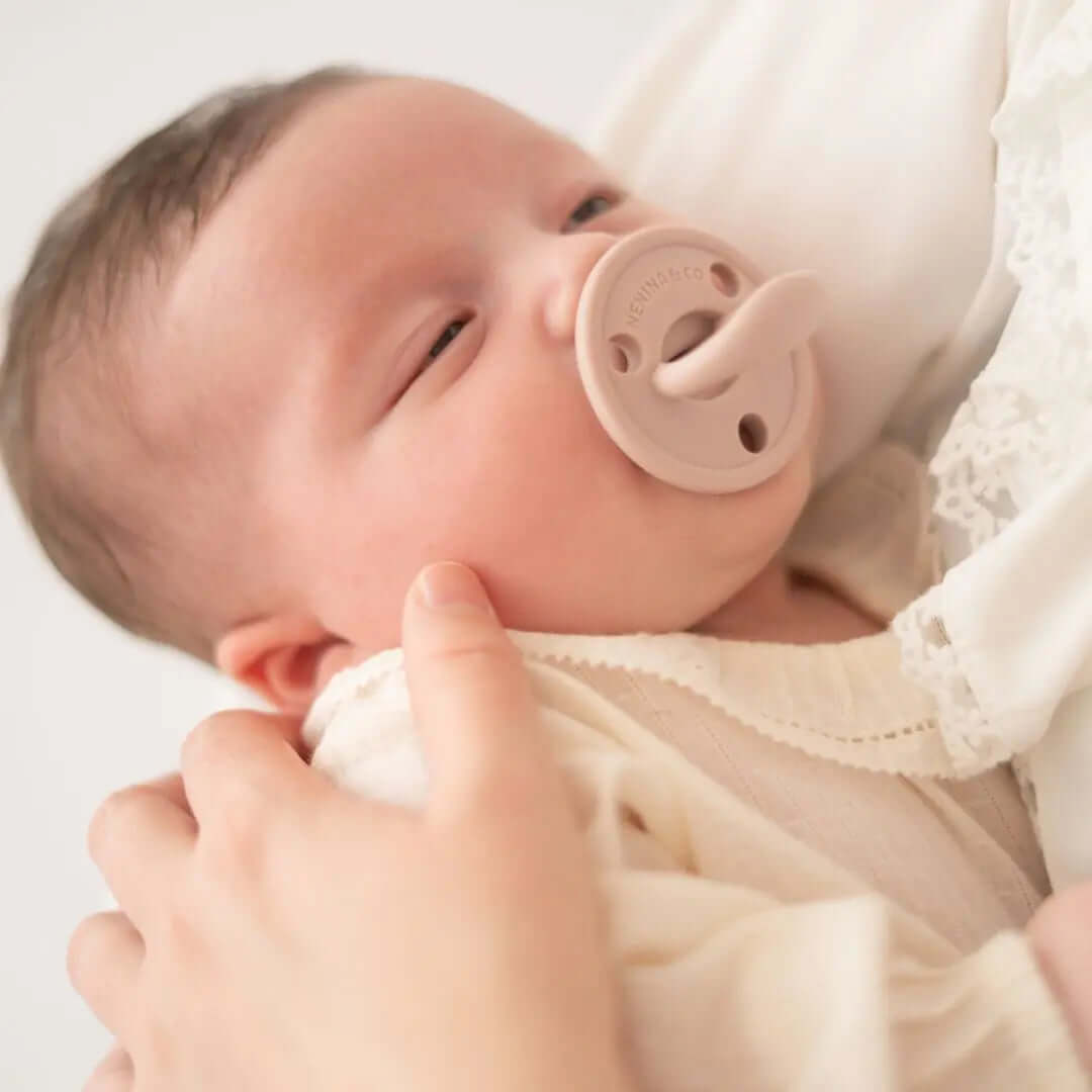 ¡Prueba los chupetes ultra suaves Nenina & Co, que se aplanan y estiran con la succión, imitando el movimiento natural del pecho de mamá!