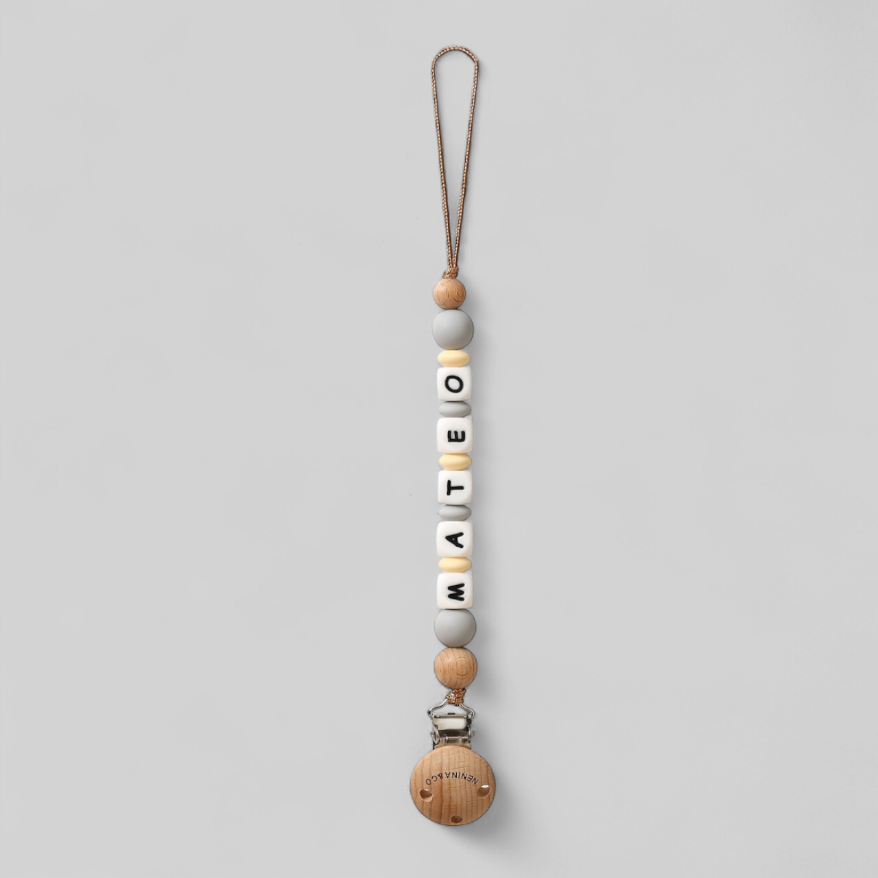 Nuestros chupeteros personalizados son más que un accesorio: son recuerdos que acompañan desde el primer día. Están elaborados con silicona orgánica de alta calidad, suaves al tacto, resistentes y completamente seguros. Combinan a la perfección con nuestros chupetes clásicos y DIAMOND de Nenina & Co. para crear un conjunto lleno de estilo y ternura.