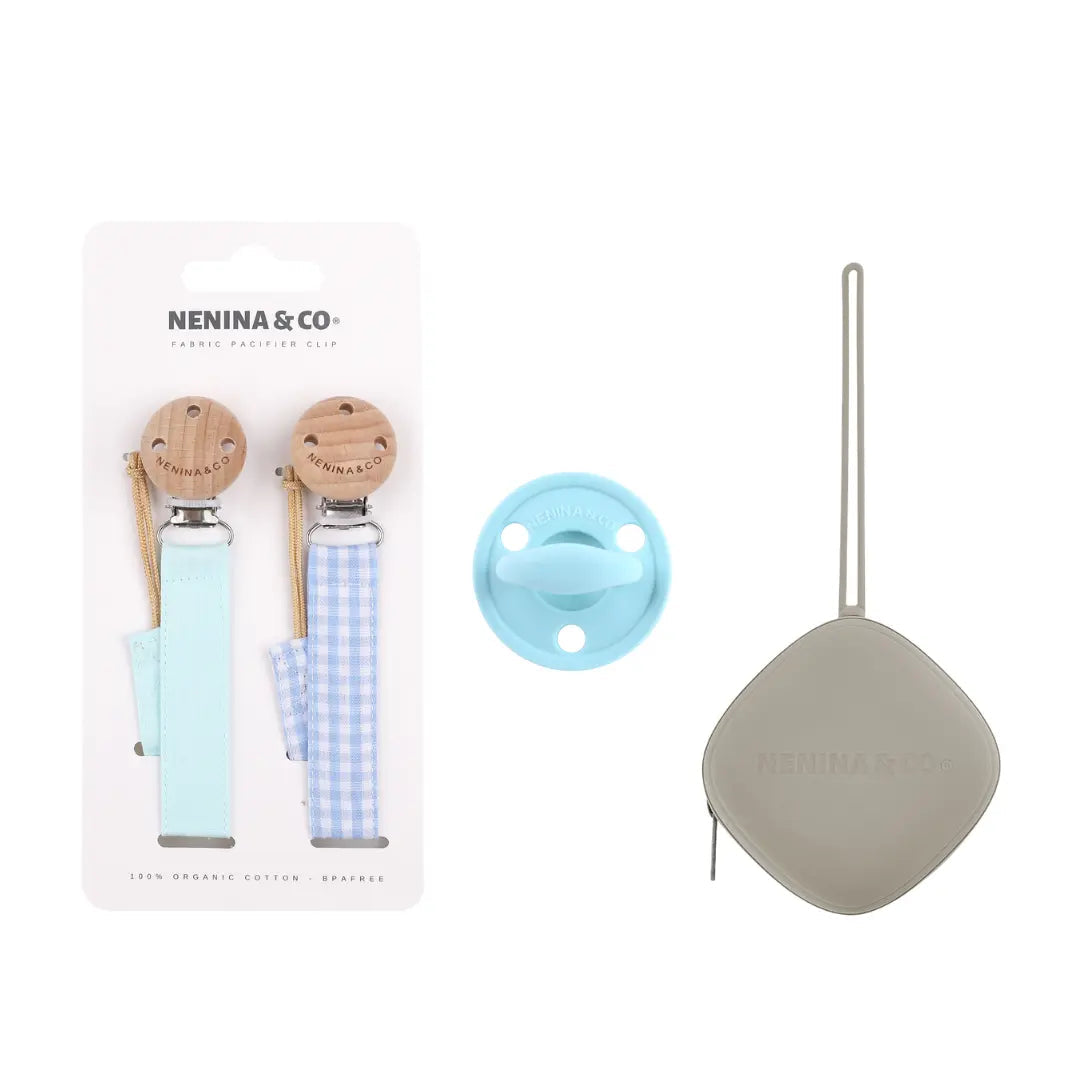 Kit de Biberón y Chupete Clásico con Chupeteros de Algodón para Bebé Recién Nacido | Nenina & Co