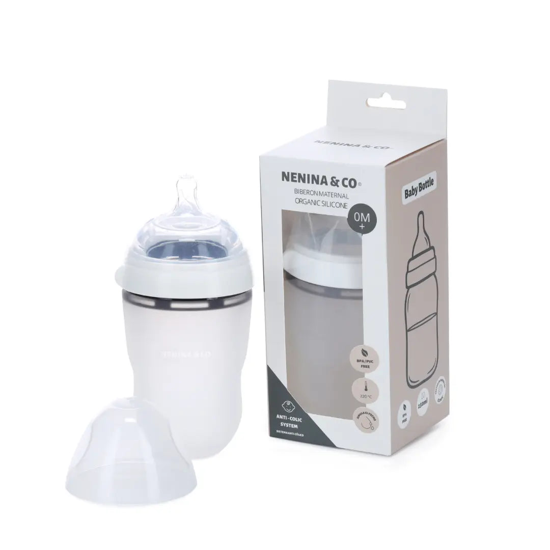 • Biberón Maternal de Silicona Orgánica: Nuestro biberón maternal está equipado con una tetina de flujo regulable que se ajusta a la fuerza de succión del bebé, garantizando una alimentación tranquila y eficaz. La silicona orgánica asegura la máxima higiene y es perfecta para padres preocupados por materiales seguros y libres de BPA.