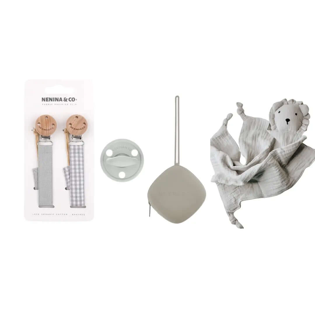 - 2 Chupeteros de Algodón Orgánico: Fabricados con materiales 100% orgánicos, estos chupeteros son suaves al tacto y seguros para tu bebé. Mantendrán el chupete siempre limpio y al alcance, evitando que se caiga o se pierda.