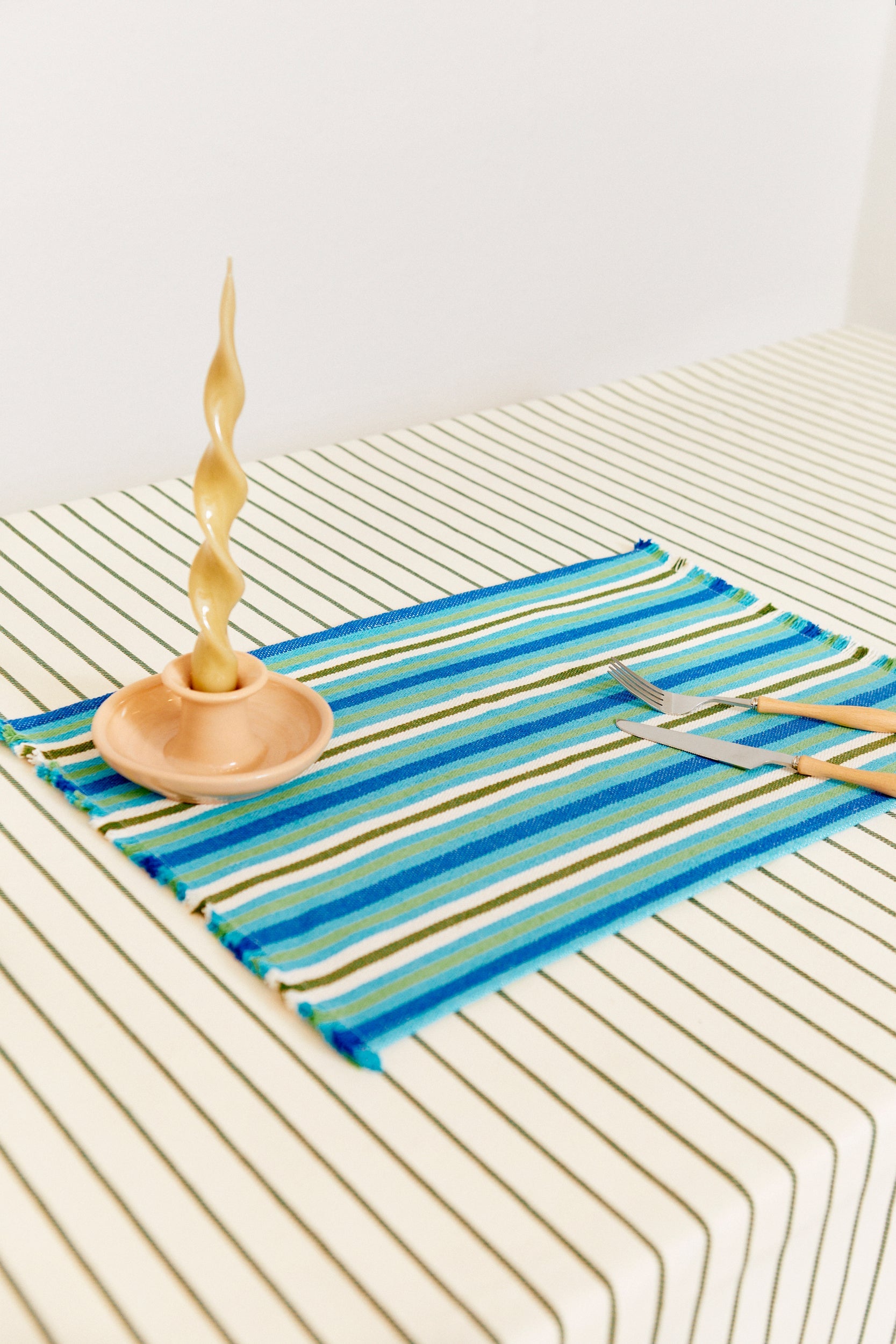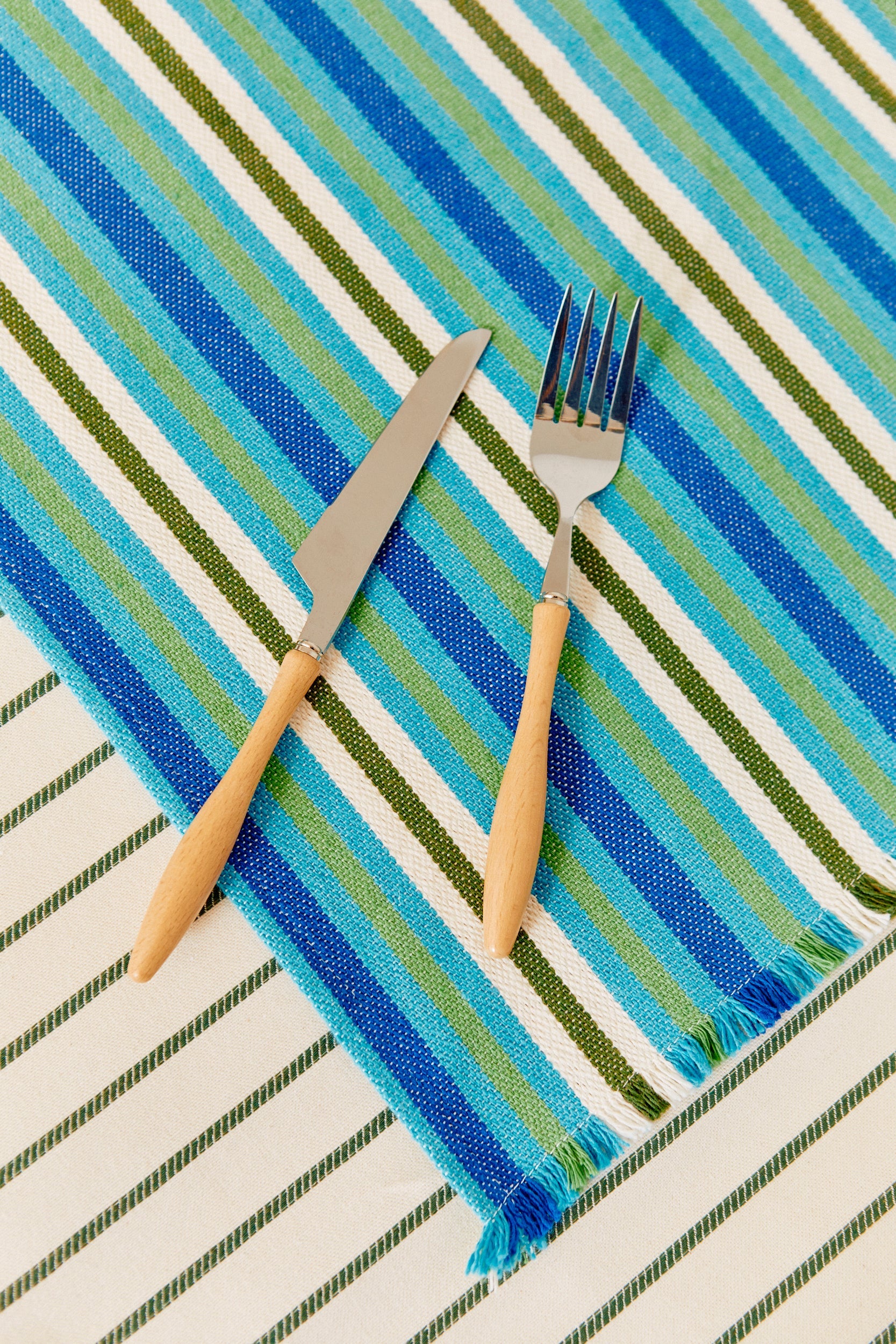 Este pack de manteles individuales en tejido canario captura la frescura y alegría de la colección Hierbabuena. Con sus vibrantes líneas en verde y azul, evocan el frescor de una tarde de verano, como un mojito refrescante o una tarde en la playa. Hechos en un tejido ligero y resistente, son perfectos para añadir ese toque veraniego a tu mesa, creando un ambiente relajado y lleno de vida. Dale a tus comidas la esencia del verano español con estos manteles, ¡una explosión de frescura y color en cada bocado!