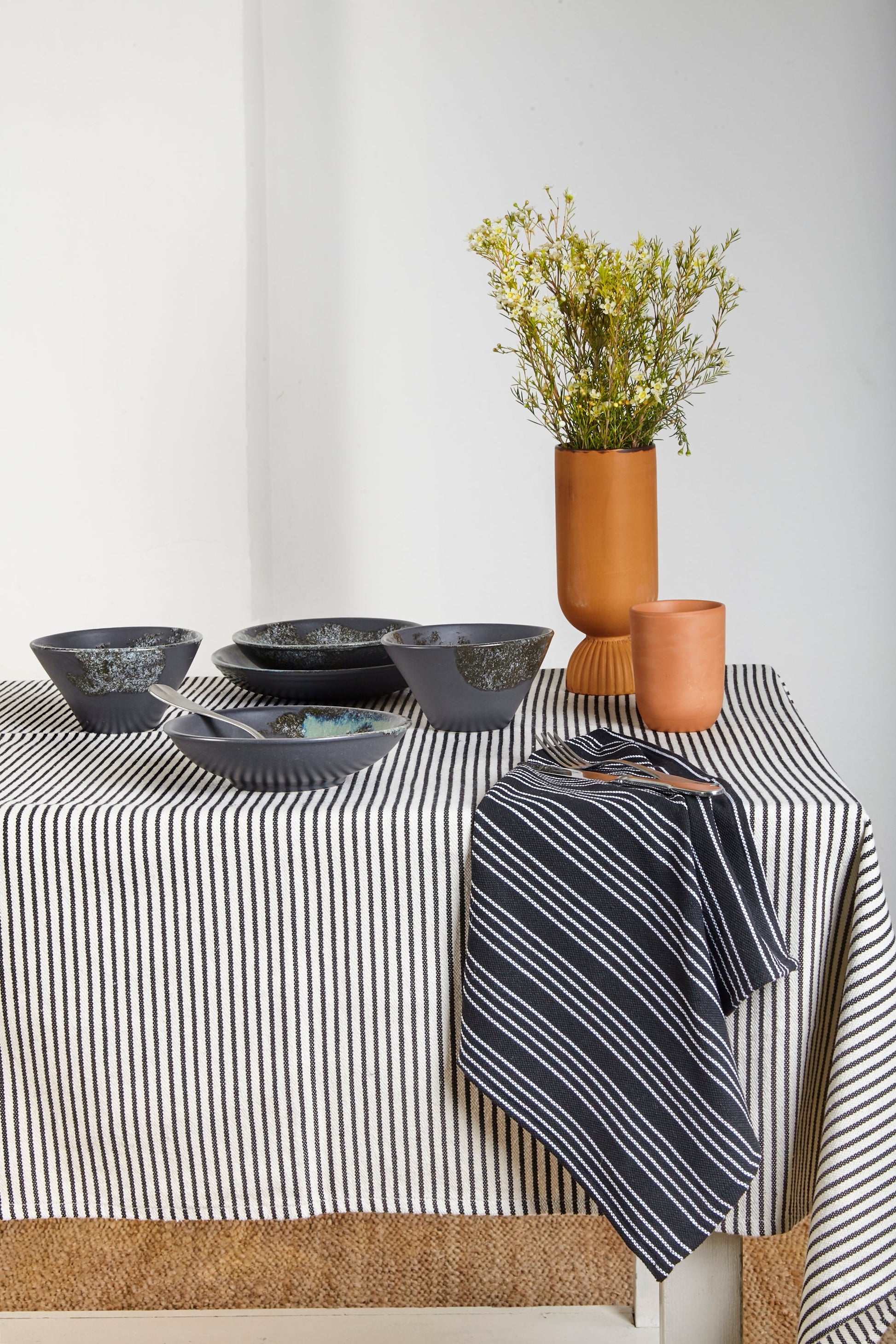 Mantel loneta estribera blanco y negro