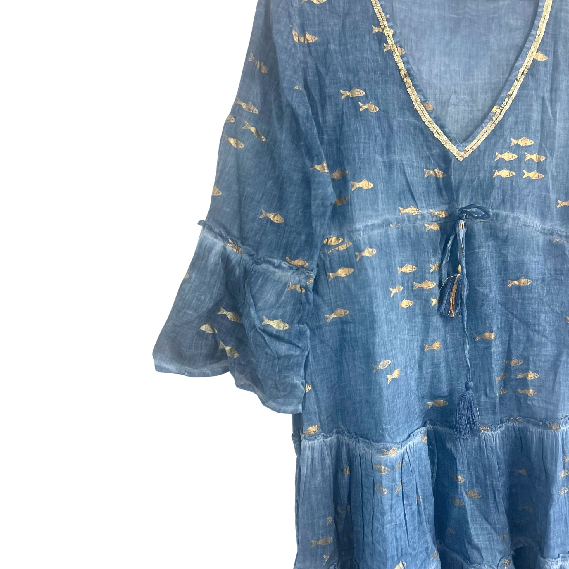 (ML) Colección Nomad Sari - Vestido - Diseño de pez azul marino y dorado