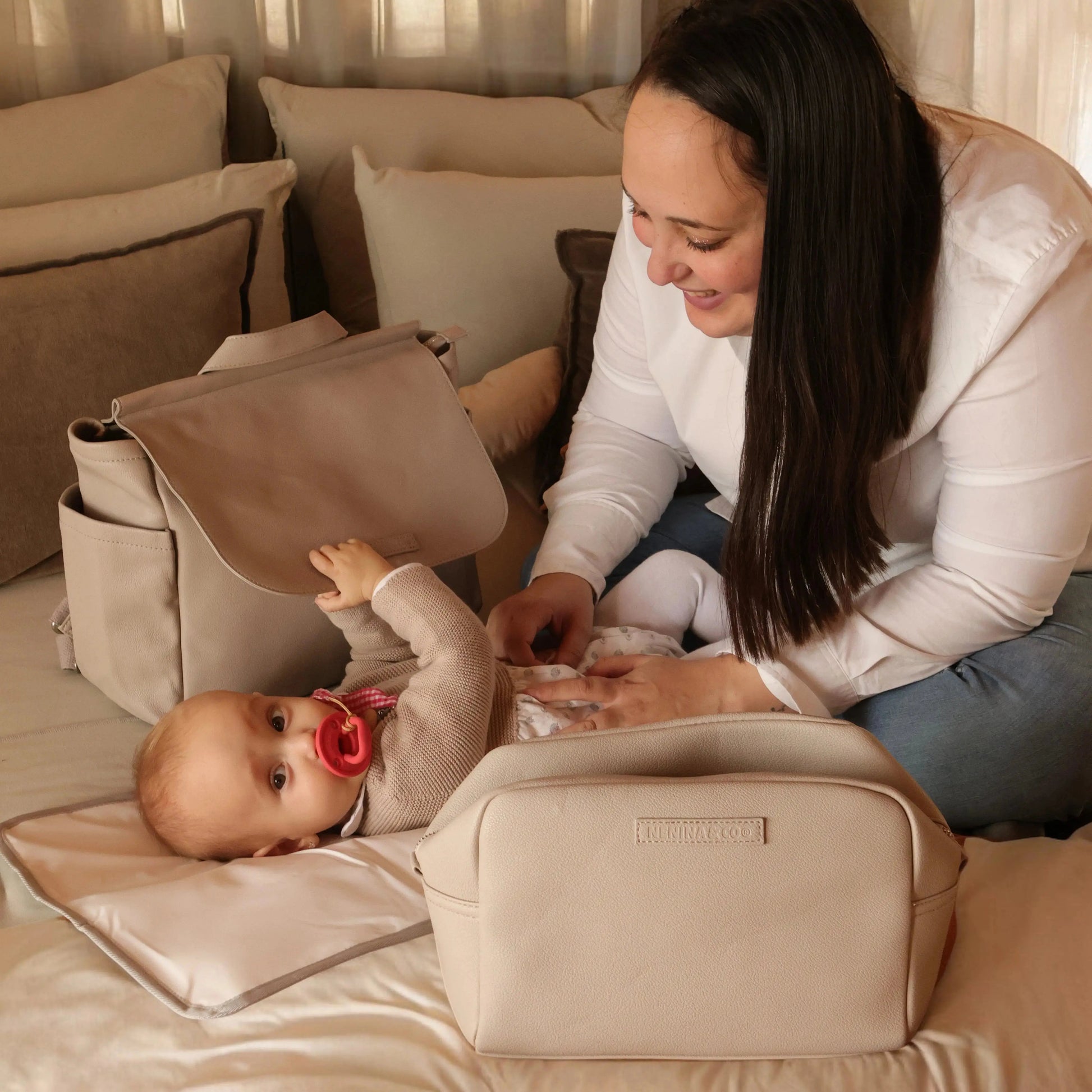 Además, este neceser forma parte de la colección MIREM by Nenina & Co., por lo que va a la perfección con los elegantes bolsos MIREM de la misma línea. Juntos, son el conjunto ideal para las mamás que buscan estilo, practicidad y calidad en sus accesorios.