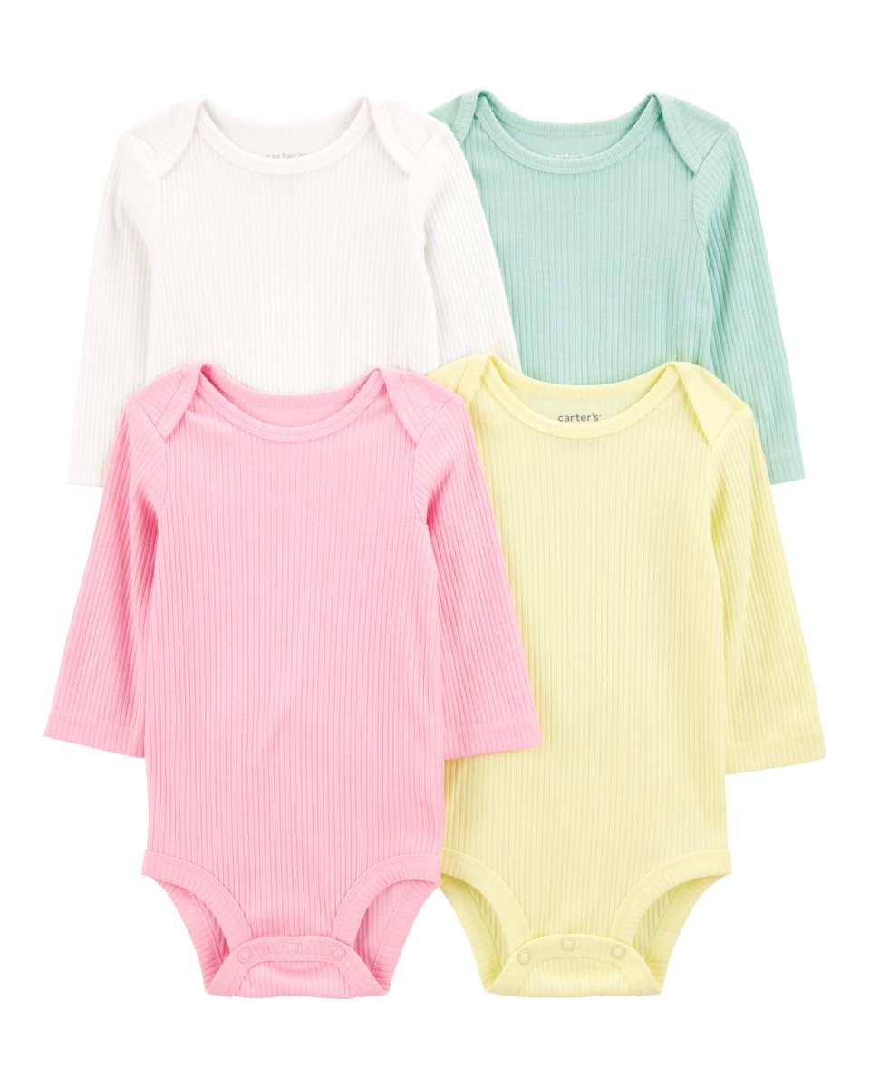 Pack de cuatro bodies de manga larga de canalé en colores del arcoíris