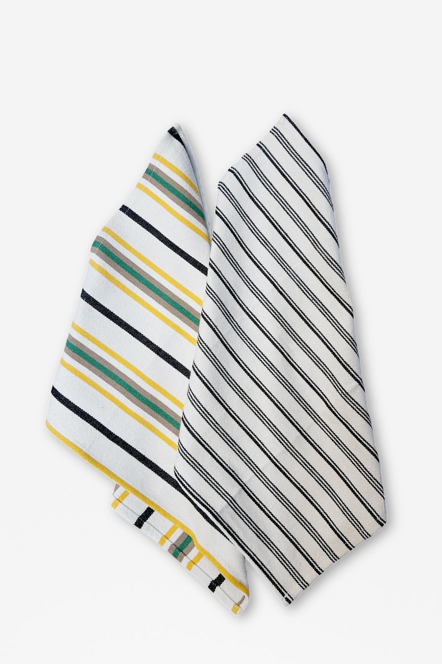 Paño de cocina loneta blanco y negro y tejido canario 2unid.