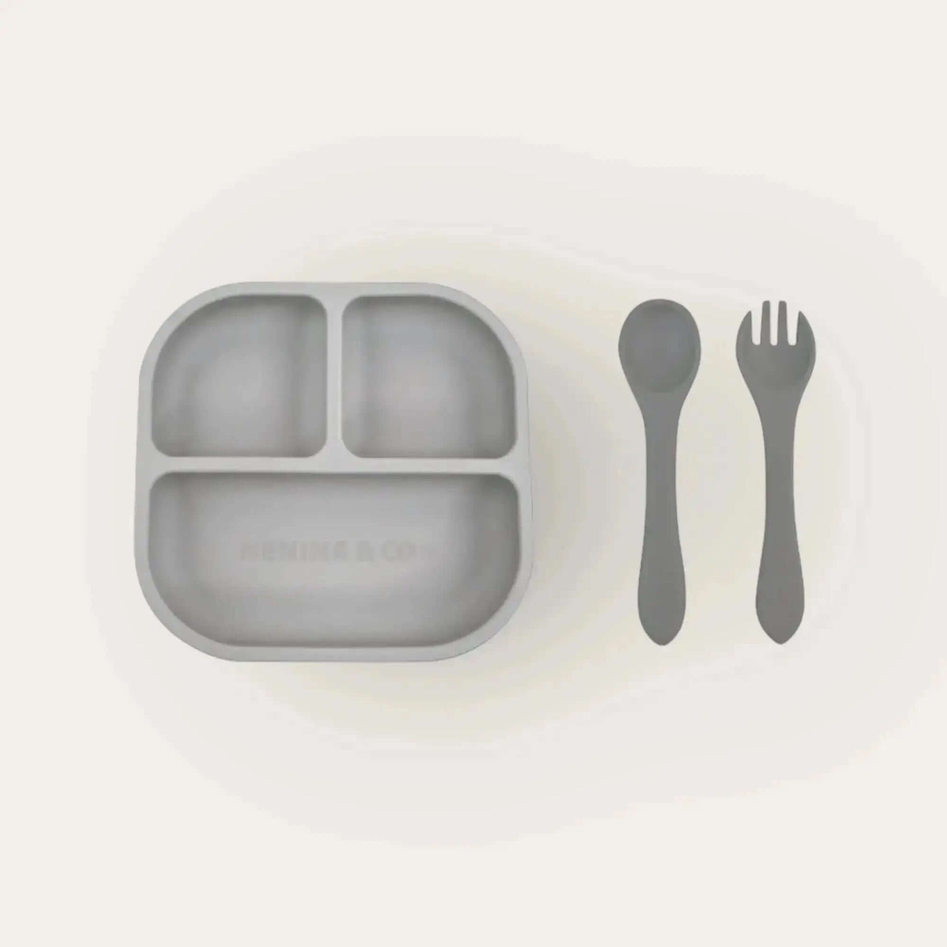 Vajilla BLW Gris 9 Piezas de Silicona orgánica con ventosas Nenina & Co