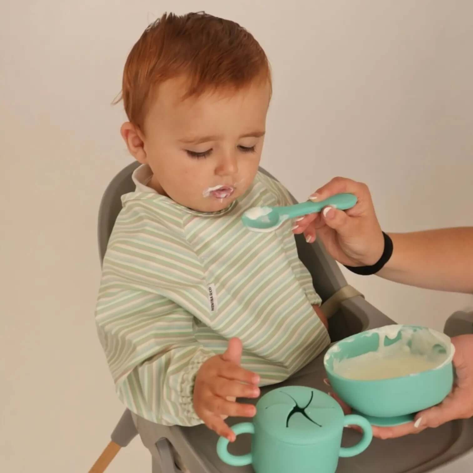 ¡Todo lo que necesitas para acompañar a tu bebé en sus primeros pasos hacia la alimentación complementaria lo encuentras en nuestro Set de Vajilla BLW de 9 piezas de Nenina & Co! Diseñado especialmente para bebés a partir de los 4 meses, este set es la mejor opción para una alimentación segura, práctica y divertida.