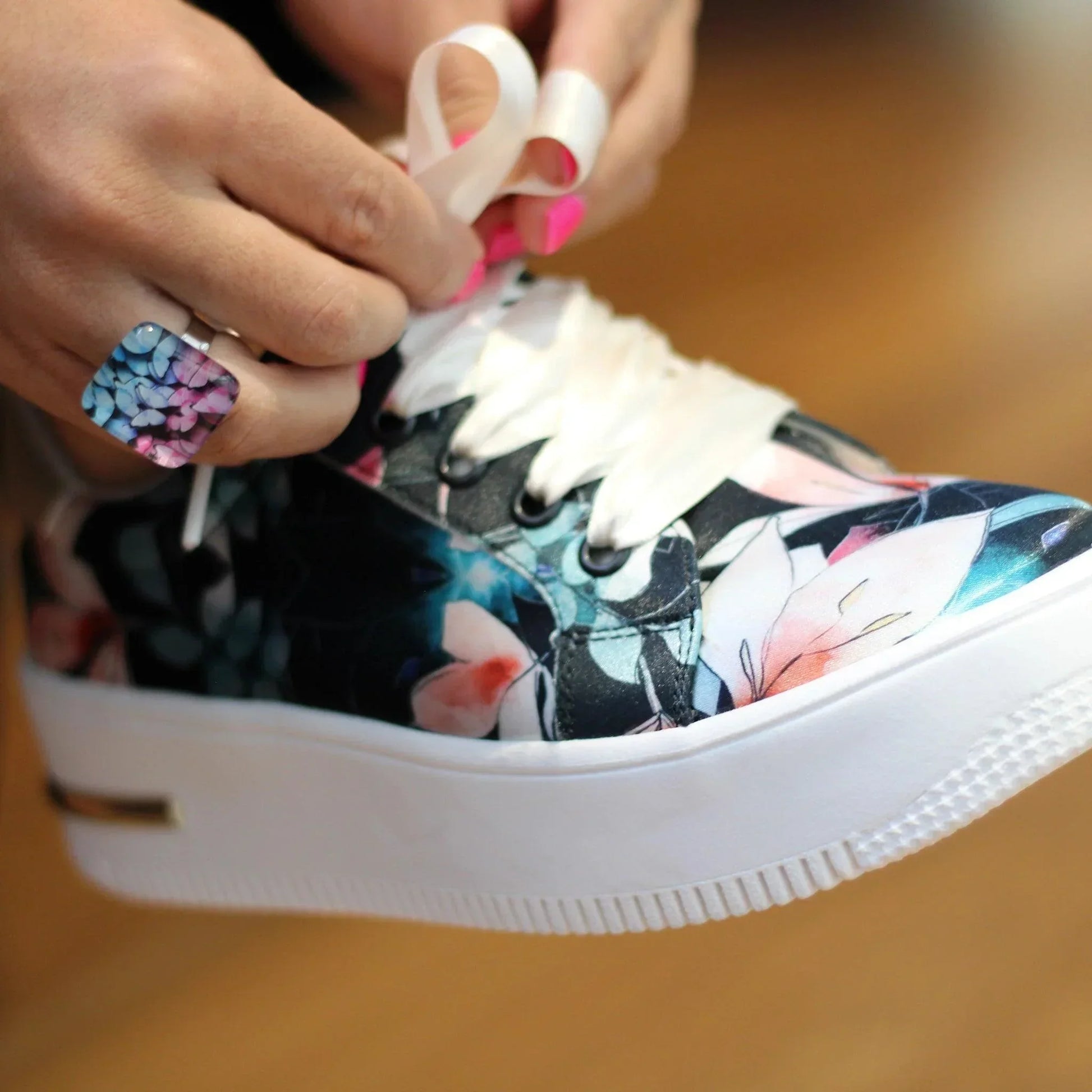 Estas zapatillas están hechas para mujeres que caminan con seguridad, que eligen con conciencia y que entienden la moda como una extensión de su identidad. Flores, fuerza y libertad, todo en un mismo paso.