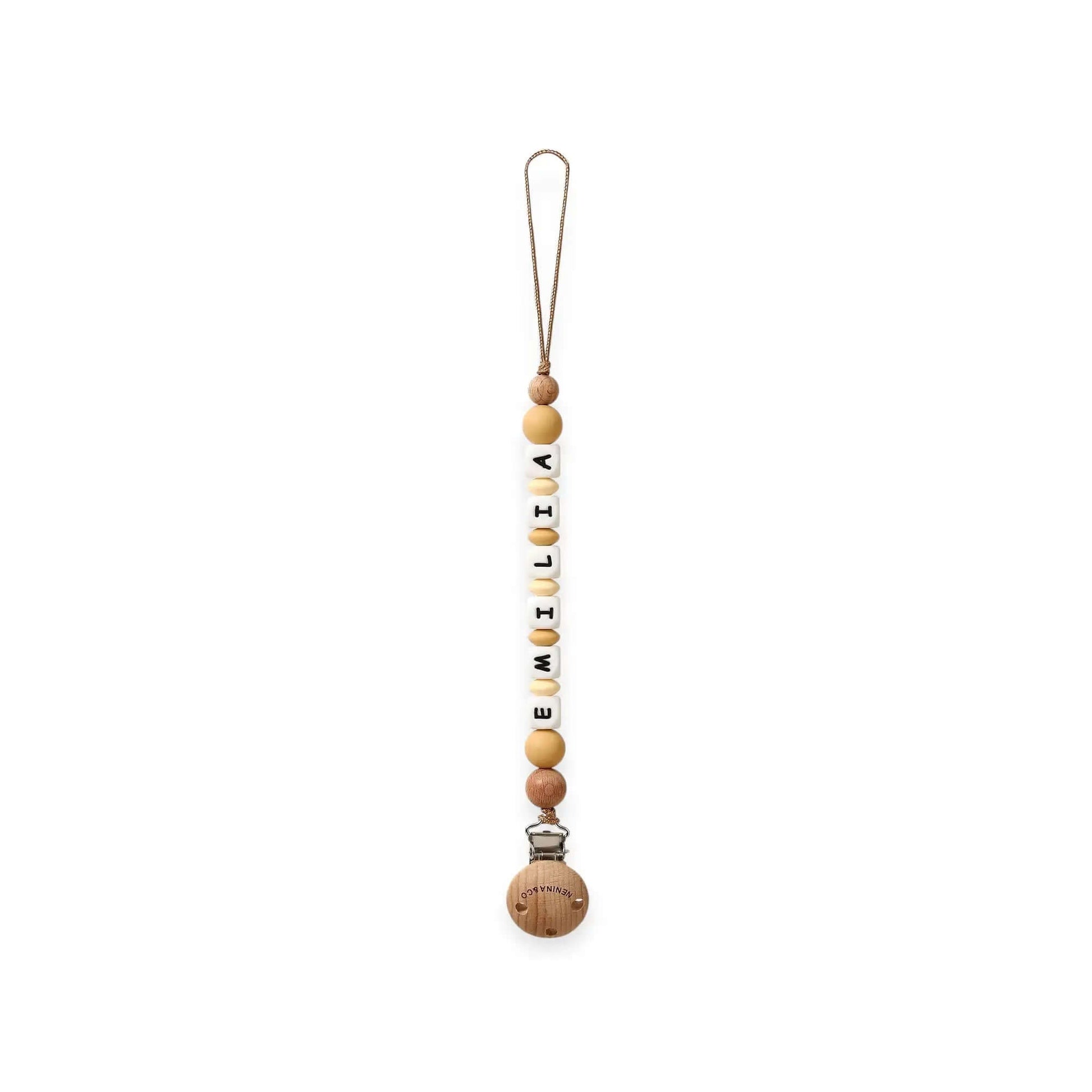 Nuestros chupeteros personalizados son más que un accesorio: son recuerdos que acompañan desde el primer día. Están elaborados con silicona orgánica de alta calidad, suaves al tacto, resistentes y completamente seguros. Combinan a la perfección con nuestros chupetes clásicos y DIAMOND de Nenina & Co. para crear un conjunto lleno de estilo y ternura.