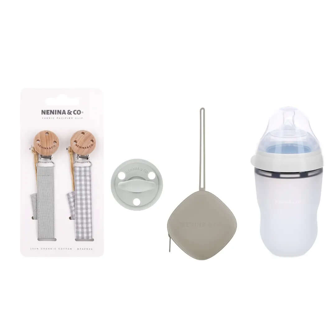 Kit de Biberón y Chupete Clásico con Chupeteros de Algodón para Bebé Recién Nacido | Nenina & Co