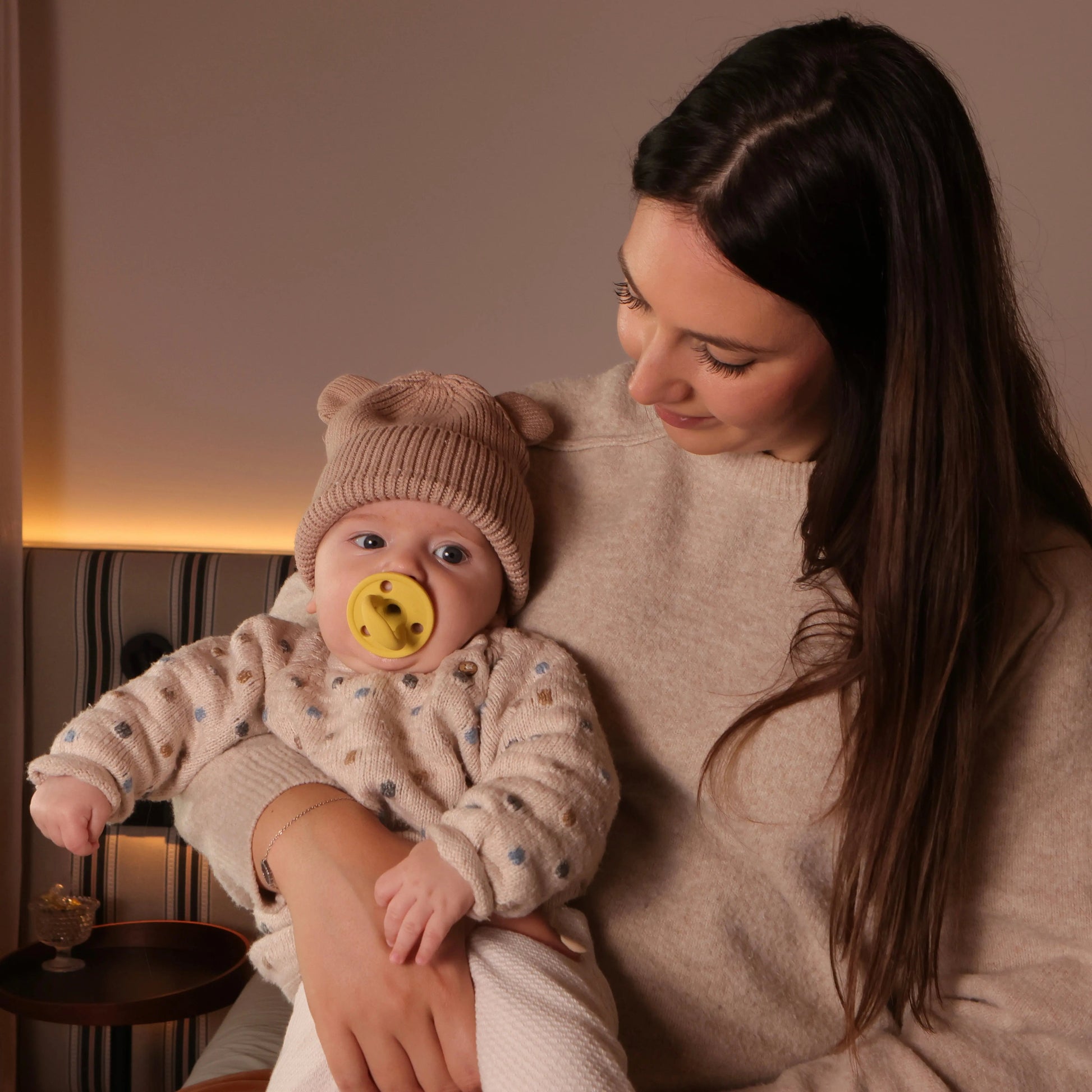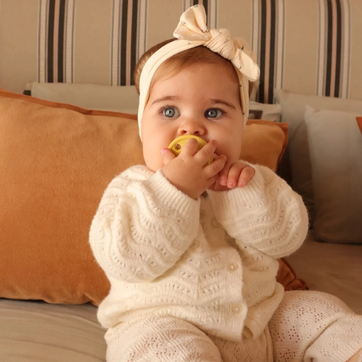 Kit Nenina & Co – Amarillo | 2 Chupeteros Algodón Orgánico + 1 Chupete Clásico de Silicona