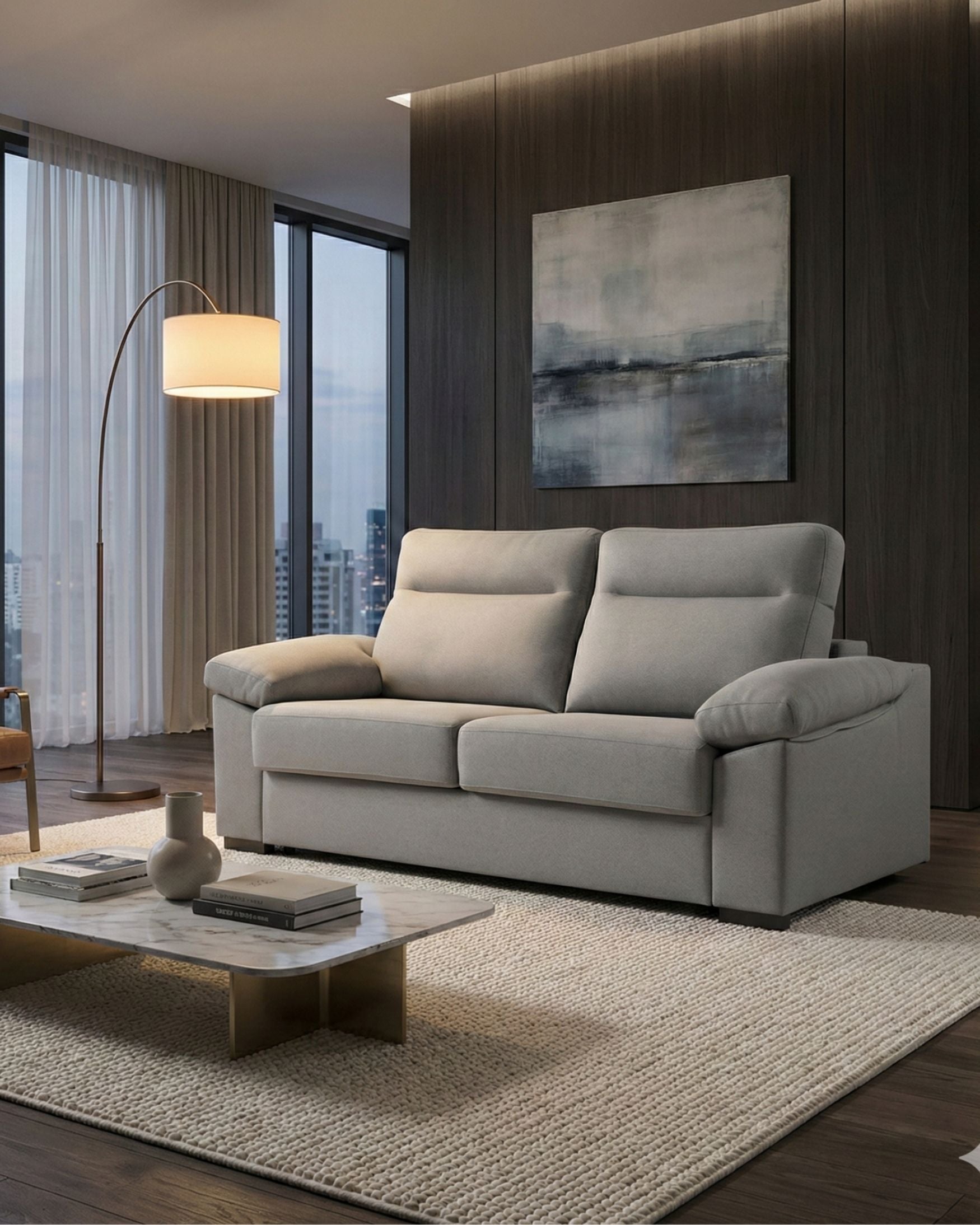 Convierte tu salón en un espacio único con el sofá cama Carol de Glosovic. Su elegante tapizado gris y capacidad para 3 plazas lo hacen ideal para combinar estilo y funcionalidad. Gracias a su apertura italiana, se transforma en segundos en una cama cómoda y resistente, perfecta para invitados o para disfrutar de un descanso diario sin renunciar al diseño.